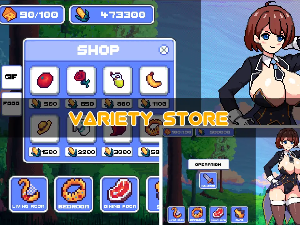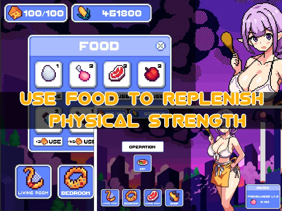 kill monsters to collect food. and you can buy gifts to give to girls.