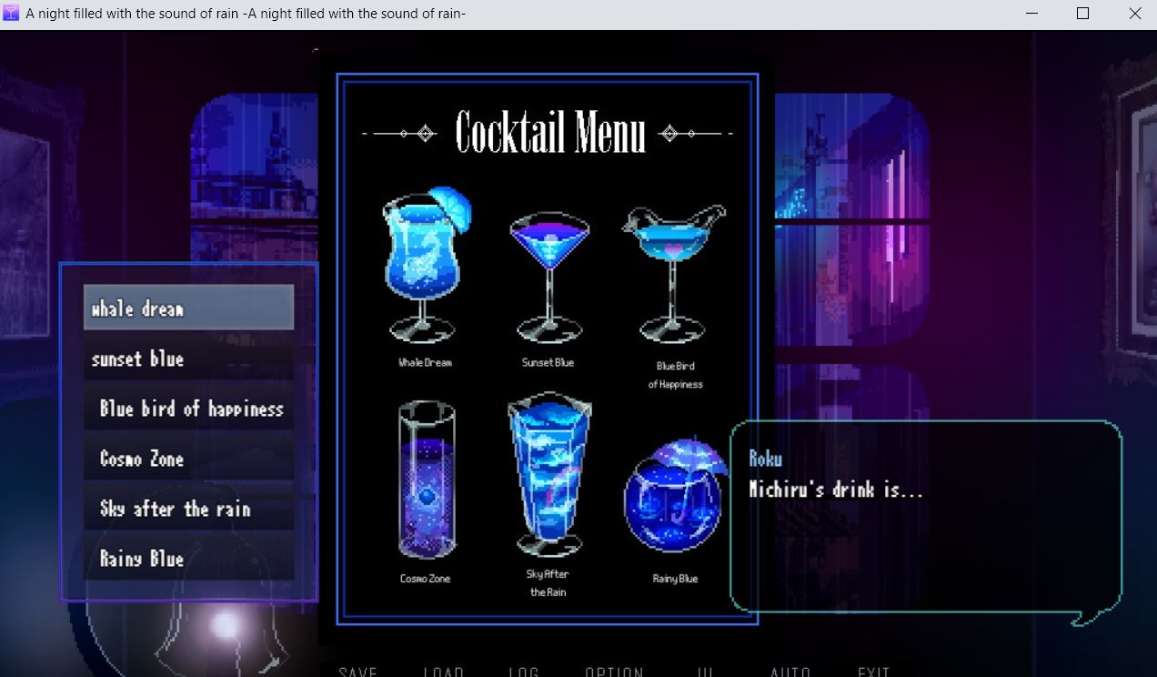 On a rainy evening during your travels, you find yourself stepping into a quiet bar where the sound of rain softly echoes in the background. Inside, a mysterious woman named Michiru seems to be waiting for you. After sharing a few drinks, you follow her to her room, where the two of you spend an unforgettable night together.