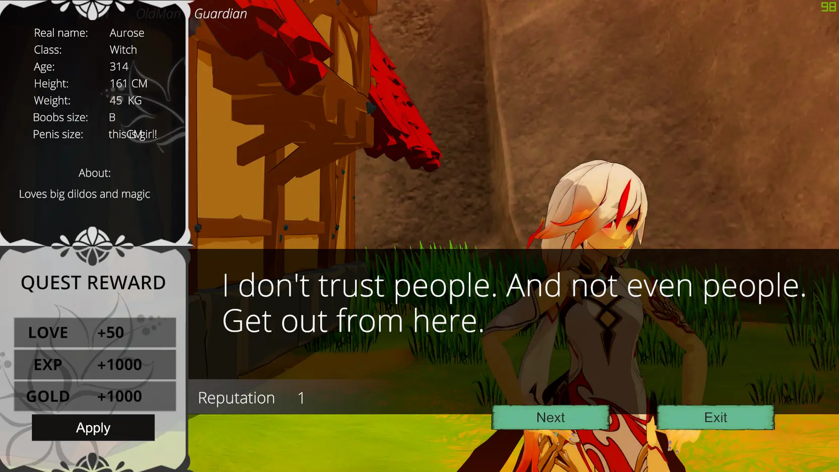 This is a 3D open world porn game. There is (or will be) a quest system, fights with monsters and bosses, pumping systems, porn animations, character customization and everything that comes into my crazy head.