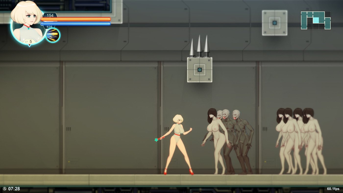 It’s inspired by Super Metroid and Metroid Fusion but also has RPG status system. When your character levels up, you get the Stat Points that be used to power up your character like Diablo.​