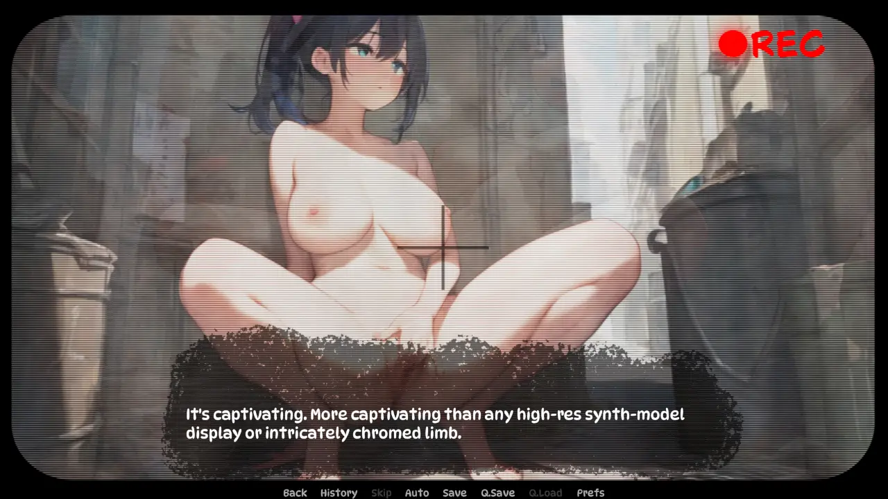 In the grunge of a future city, an alleyway draws you in. Inside is a blinking light. A monitor. A camera feed. A woman.​