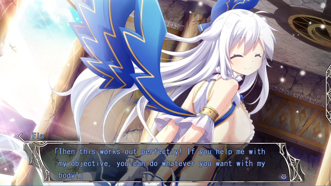 After waking up, Fia told him that she has no memory of herself; however, she knows that she is unmistakably a Goddess. Continuing, she tells Avaro that she could, if she wanted to, move the entirety of the ruins with her Godly powers, and she points out that she has to, no matter what, make it to the closed-off holy ground of the Kingdom. The “Mist Corridor of the Sacred Sound.”