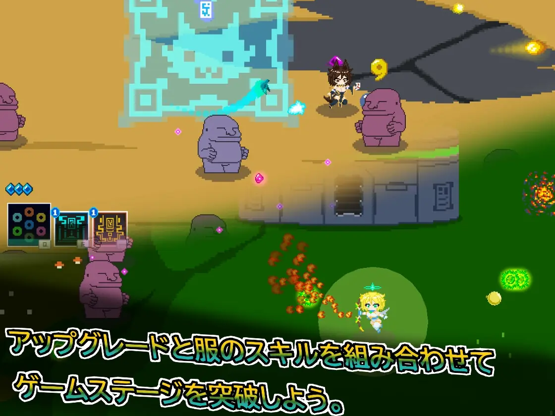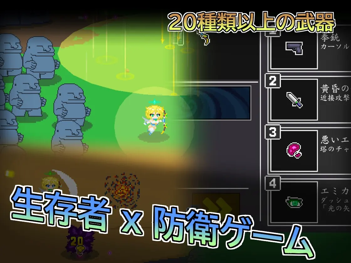 The player plays as the arrogant angel Emika. They carry out a mission to destroy a desolate planet alone. It is a ‘survivor’ type of gameplay with the objective of protecting a tower.