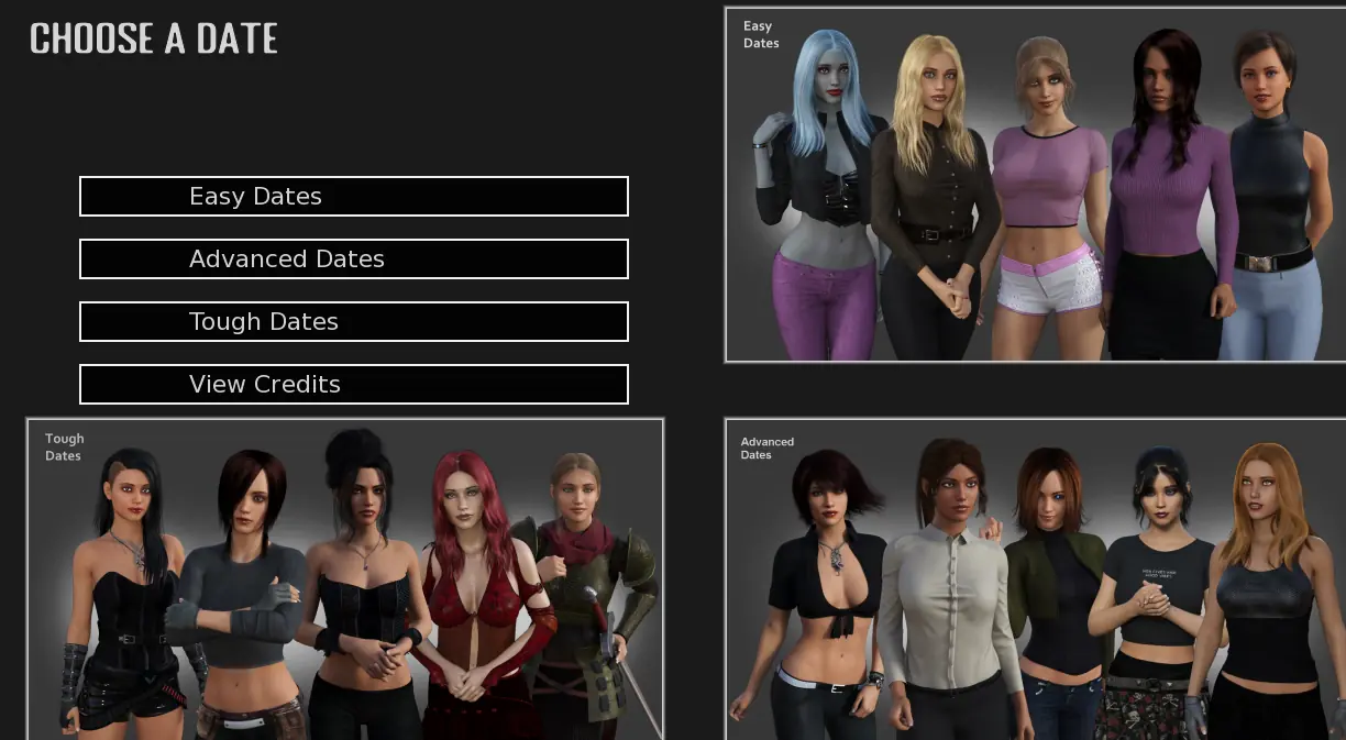 A collection of 15 casual short dates in dating sim format. Charm these beautiful ladies from a range of settings and attempt to have a successful date that ends with intimacy.