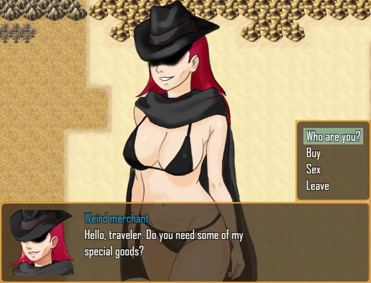 In a post-apocalyptic world destroyed by a galactic event, you have to find the woman that tried to kill you and stole the package you had with you. Inspired by Fallout New Vegas and Wasteland, explore an open world map full of events, monsters and sex scenes.