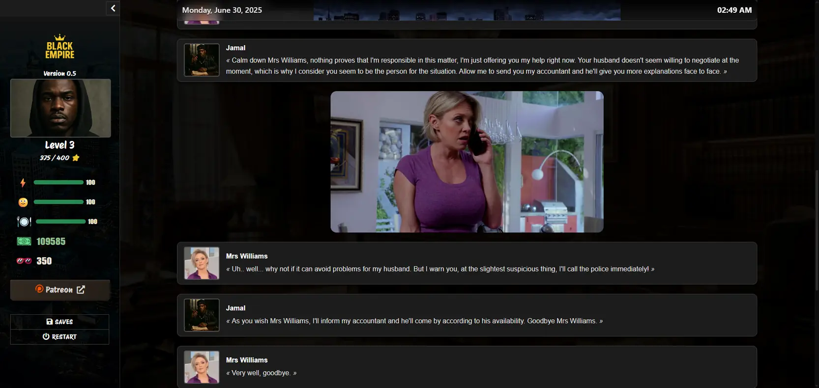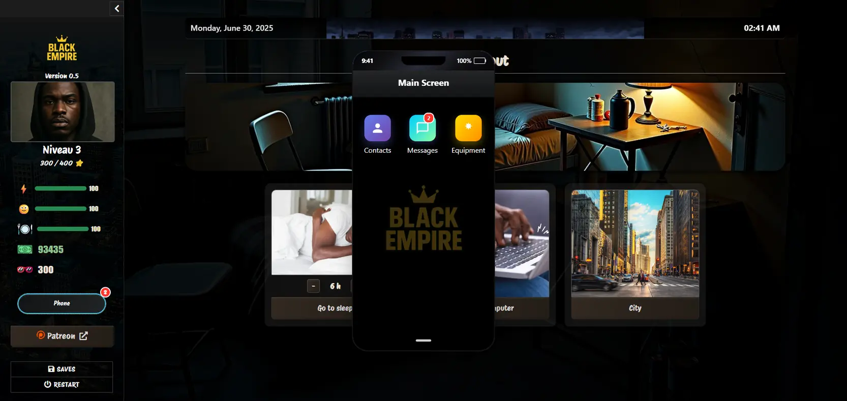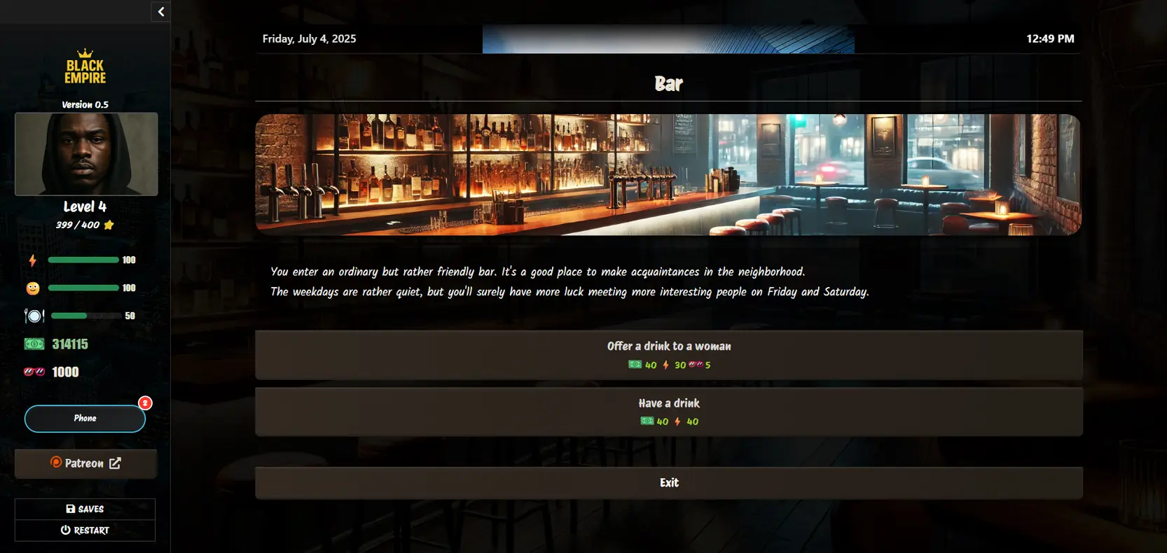 Welcome to Black Empire, an urban RPG that evolves the main character in a world full of temptations and opportunities!