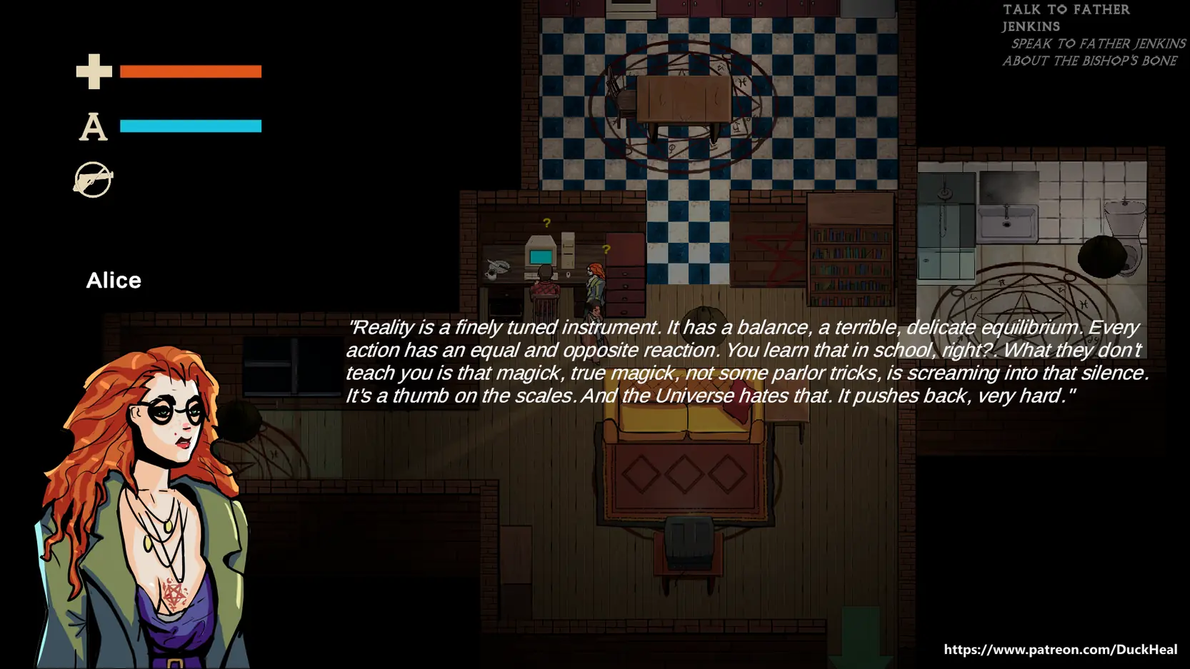 Play as Ethan, a traumatized, chain-smoking detective drowning his sorrows in the seemingly mundane town of Abbot’s Hollow in the late 1990’s. Uncover a sprawling supernatural conspiracy in this dark, 2D narrative RPG. Featuring a gritty, hand-drawn comic book art style, the game blends deep dialogue and environmental storytelling with brutal, tactical combat. Target enemy limbs for strategic effects, wield melee weapons and forbidden magick, and shape your character with RPG stats. This is a mature (18+), combat-heavy and story-focused experience where the narrative doesn’t serve sex, but sexuality is used to enhance enhance the narrative.​
