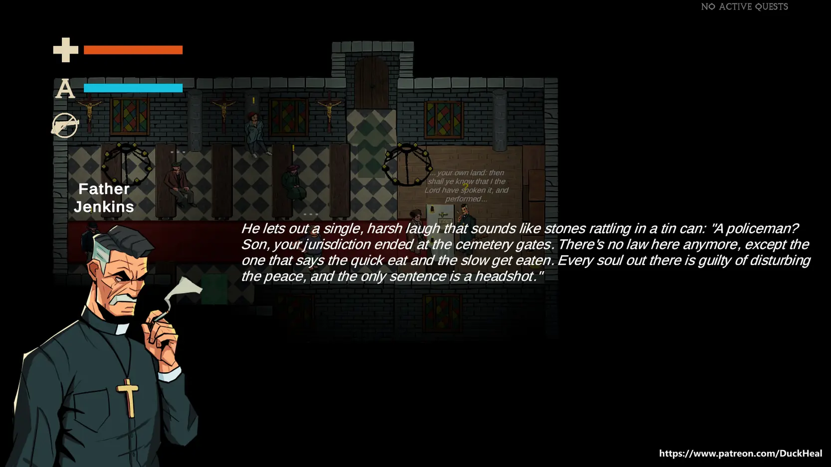 Known Issues Bug Report Form• The player hitbox has been updated to include the entire body, not just a small area at the feet. This will make dodging attacks more challenging but makes hit detection more predictable. • Guns are now separated into Manual and Automatic categories. Manual weapons require a click for each shot, while Automatic weapons will fire continuously as long as the trigger is held. • Added tooltips that appear when hovering the mouse over inventory items. • Reduced the experience gained from "The Hungry Choir" quest. • Added an experience reward to the "Sinner's Saint" quest. • Fixed a bug that caused "The Hungry Choir" quest to require 1 zombie kill instead of the intended 10. • Fixed a bug that could cause the player to become stuck when leaving or entering the church. • Fixed an issue where "The Sinner's Saint" quest would not complete if the player finished the objectives before accepting the quest from Jenkins.