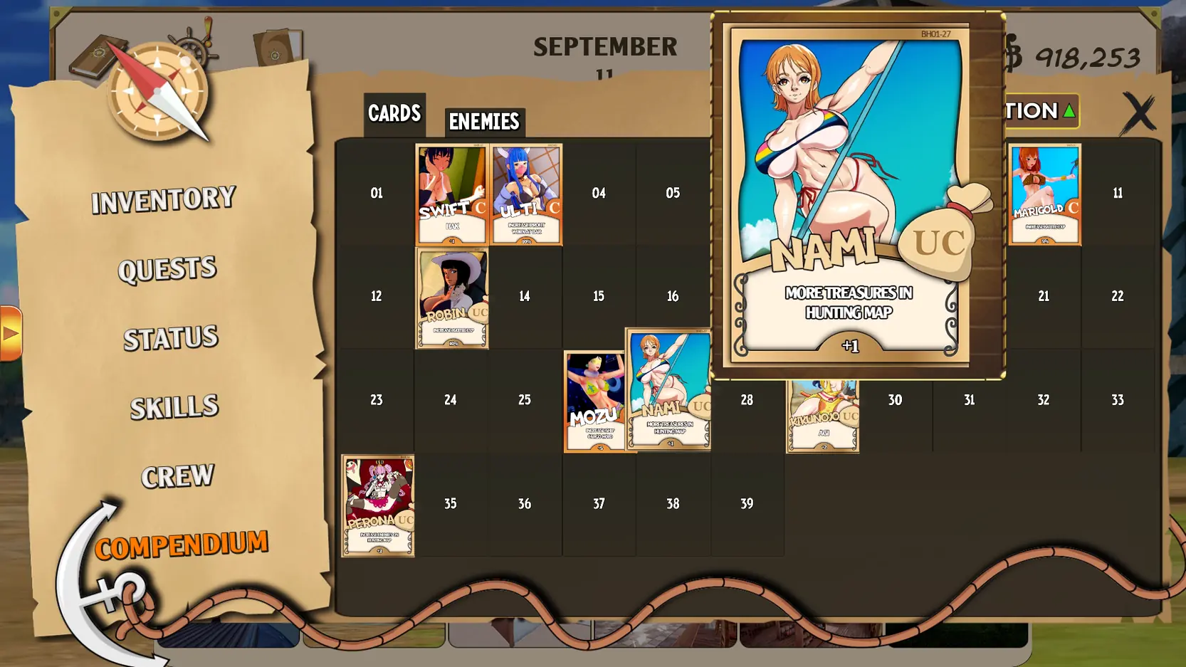 Booty Hunter is a ONE PIECE RPG/H-GAME, where you complete QUESTS and BOUNTIES while meeting new people, building your crew, and getting stronger. The game gives you the freedom to explore the world.