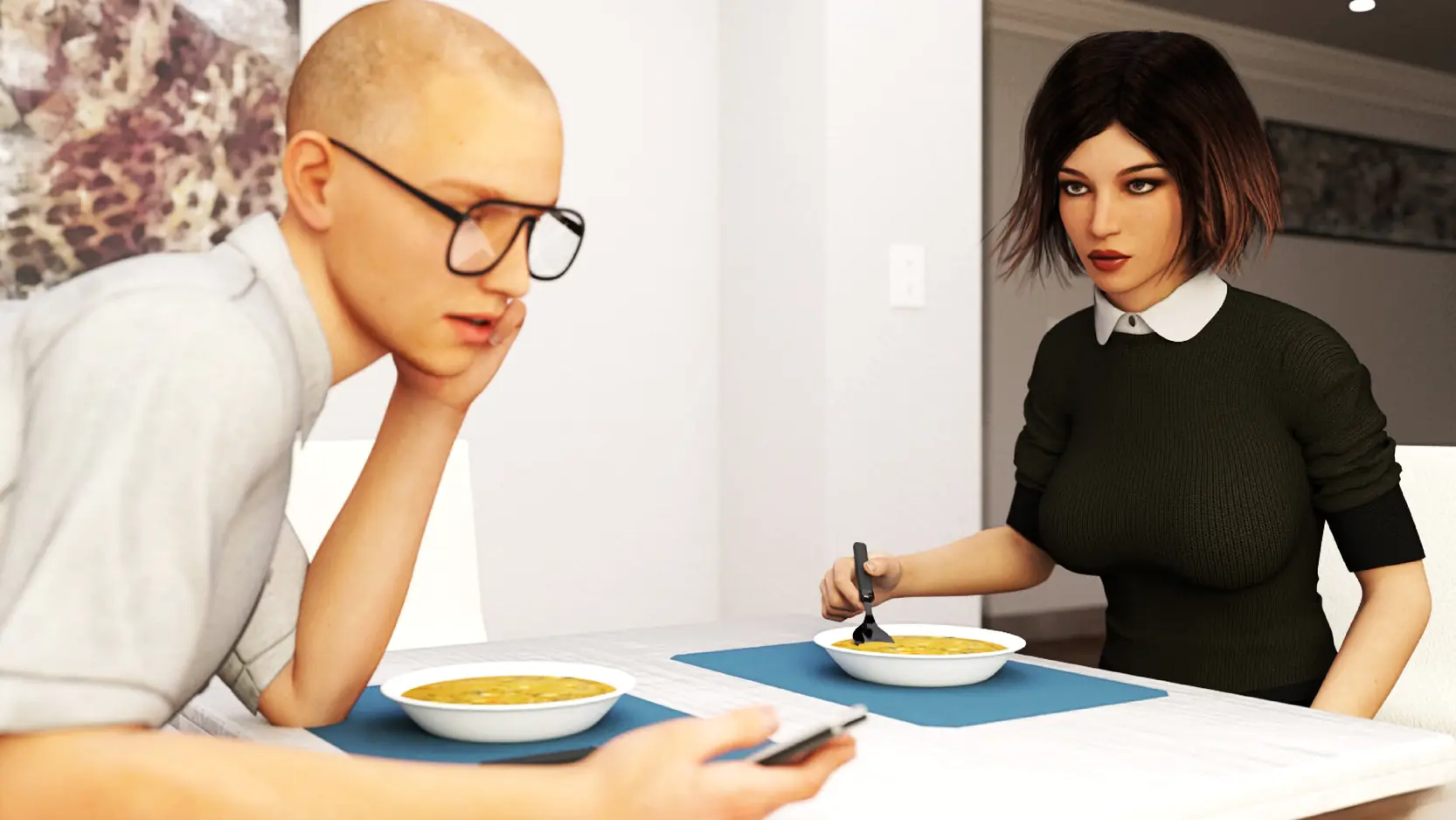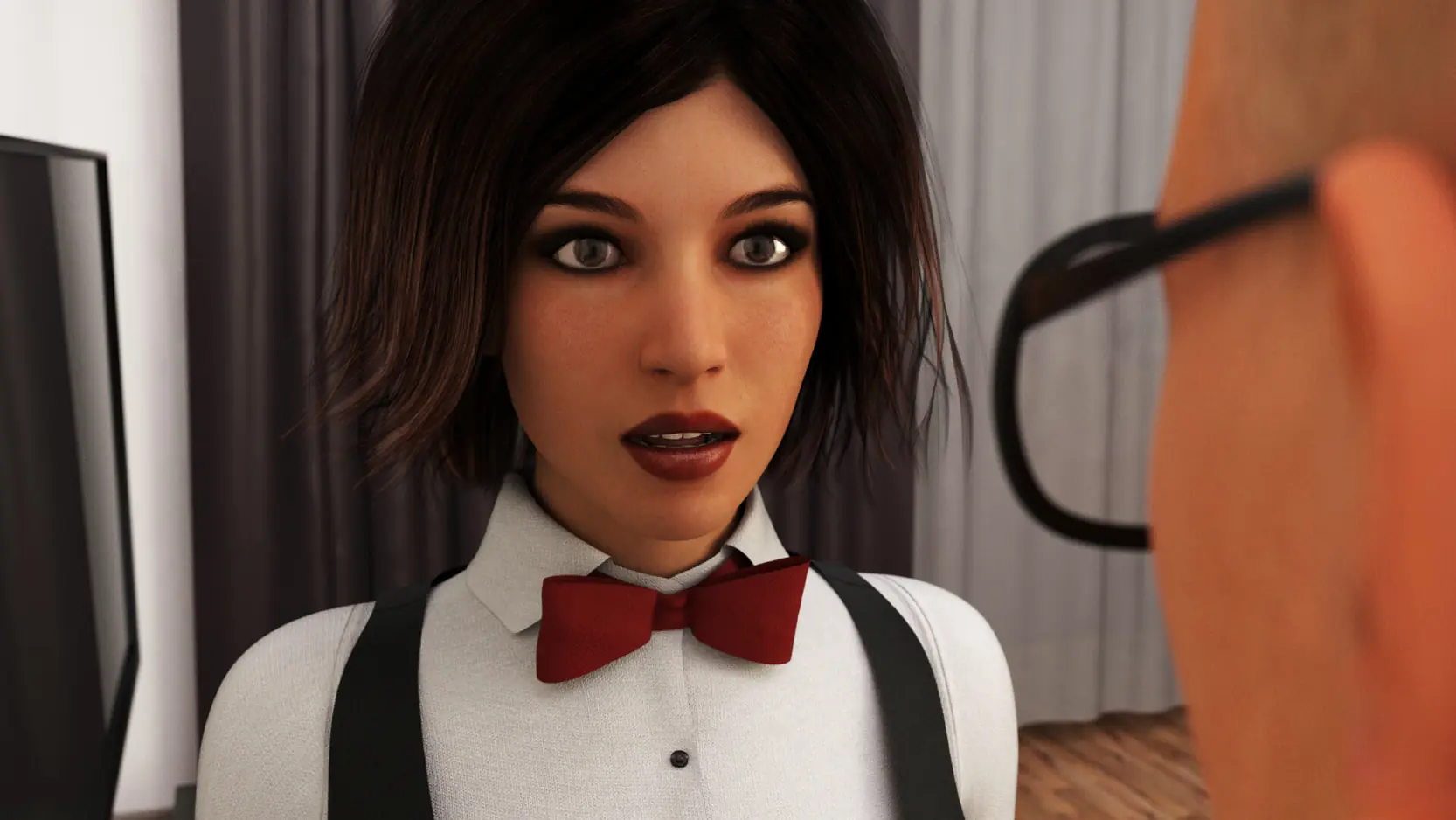 Bound by Desire is a provocative visual novel about a waitress, Mabel, whose life is forever changed when her husband introduces her to a secret fantasy involving his close friend.