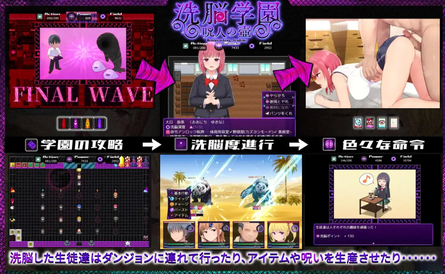 A simulation RPG where you use the power of a brainwashing curse to erotically take over the academy as a strategist!!