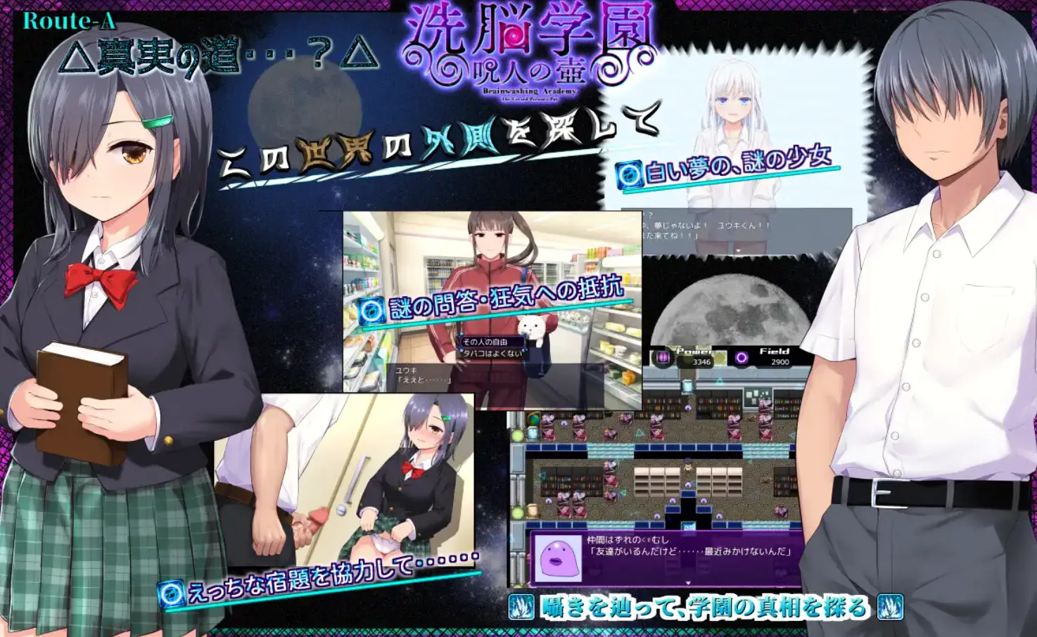 The protagonist acquires the power of brainwashing from a mysterious man and, along with the man’s niece, Kanou Masamitsu, is tasked with infiltrating the academy and taking down the student council president. ▲Will you destroy the academy and indulge in your desires… ▲Or will you uncover the secrets of the academy and find the truth…