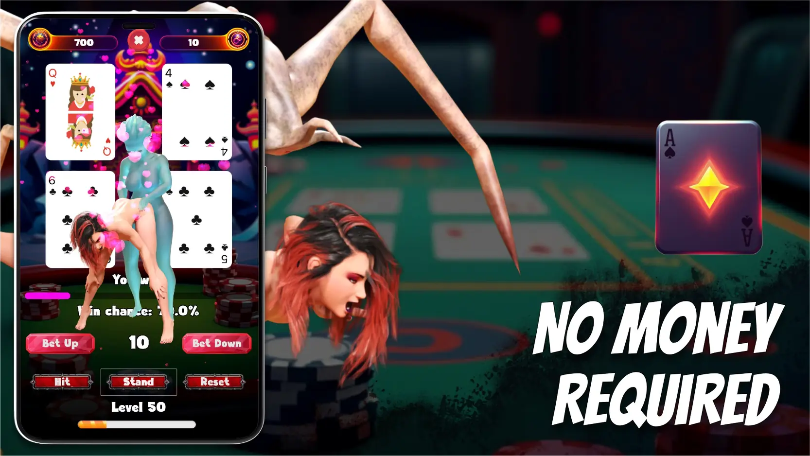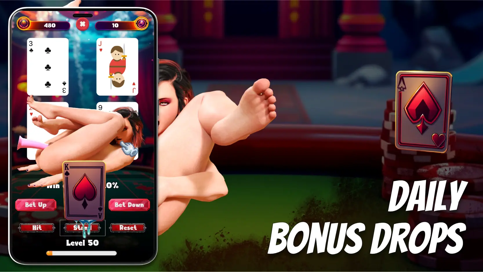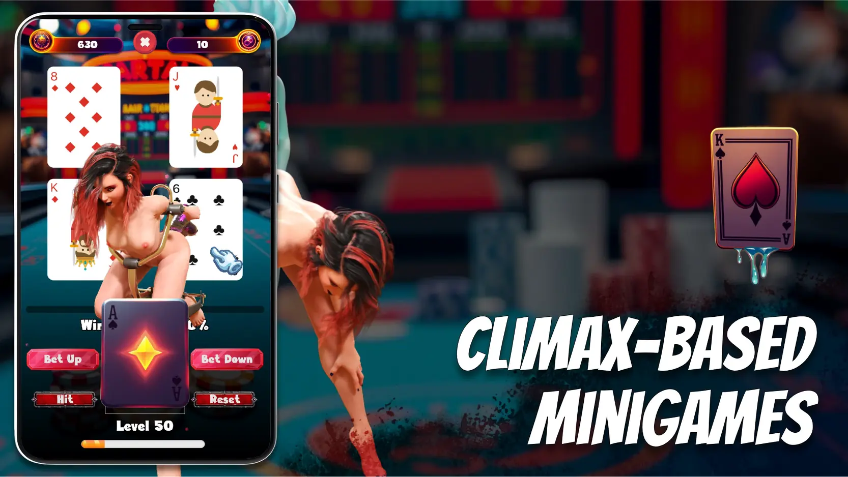 Climax Cards: Blackjack is a sensual twist on classic blackjack — no real money, just seductive rewards. Level up, unlock over 30 spicy CG scenes, and take Wyn over the edge in steamy minigames. Log in daily to claim bonuses and keep the pleasure going.