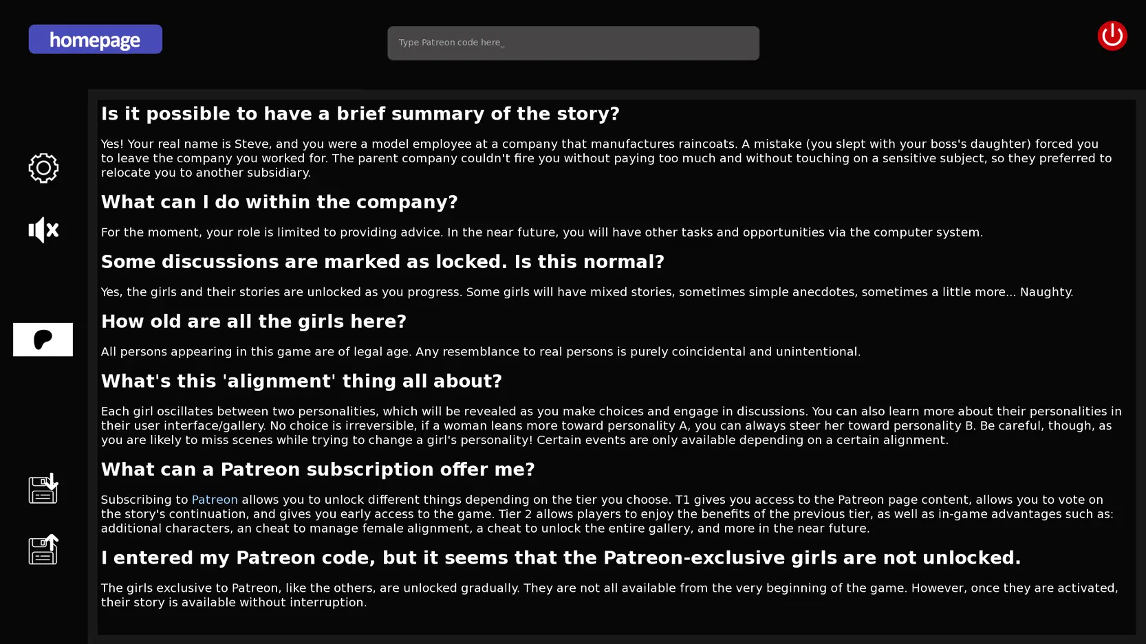 About The Game: Company Steve is a porn game made on Ren'Py game engine. This game is rated M and meant for adults with explicit contents and strong language. It is advised to read the tags to get an idea about the game. The current available version is v.Company Steve. THe contents of the game is Uncensored. Company Steve is developed and distributed by CorpoSteve, Please support CorpoSteve if want the development of Company Steve game going or want to see more new games from them in future. The download links are crawled and gathered from various public sites. We do not host/modify or alter the contents. The uploader is responsible for the DMCA.