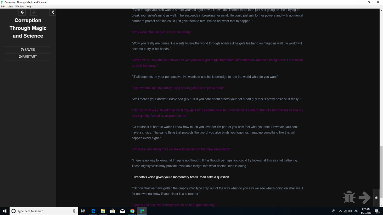 About The Game: Corruption Through Magic and Science is a porn game made on HTML game engine. This game is rated M and meant for adults with explicit contents and strong language. It is advised to read the tags to get an idea about the game. The current available version is v.Corruption Through Magic and Science. THe contents of the game is Uncensored. Corruption Through Magic and Science is developed and distributed by AJLee7385, Please support AJLee7385 if want the development of Corruption Through Magic and Science game going or want to see more new games from them in future. The download links are crawled and gathered from various public sites. We do not host/modify or alter the contents. The uploader is responsible for the DMCA.