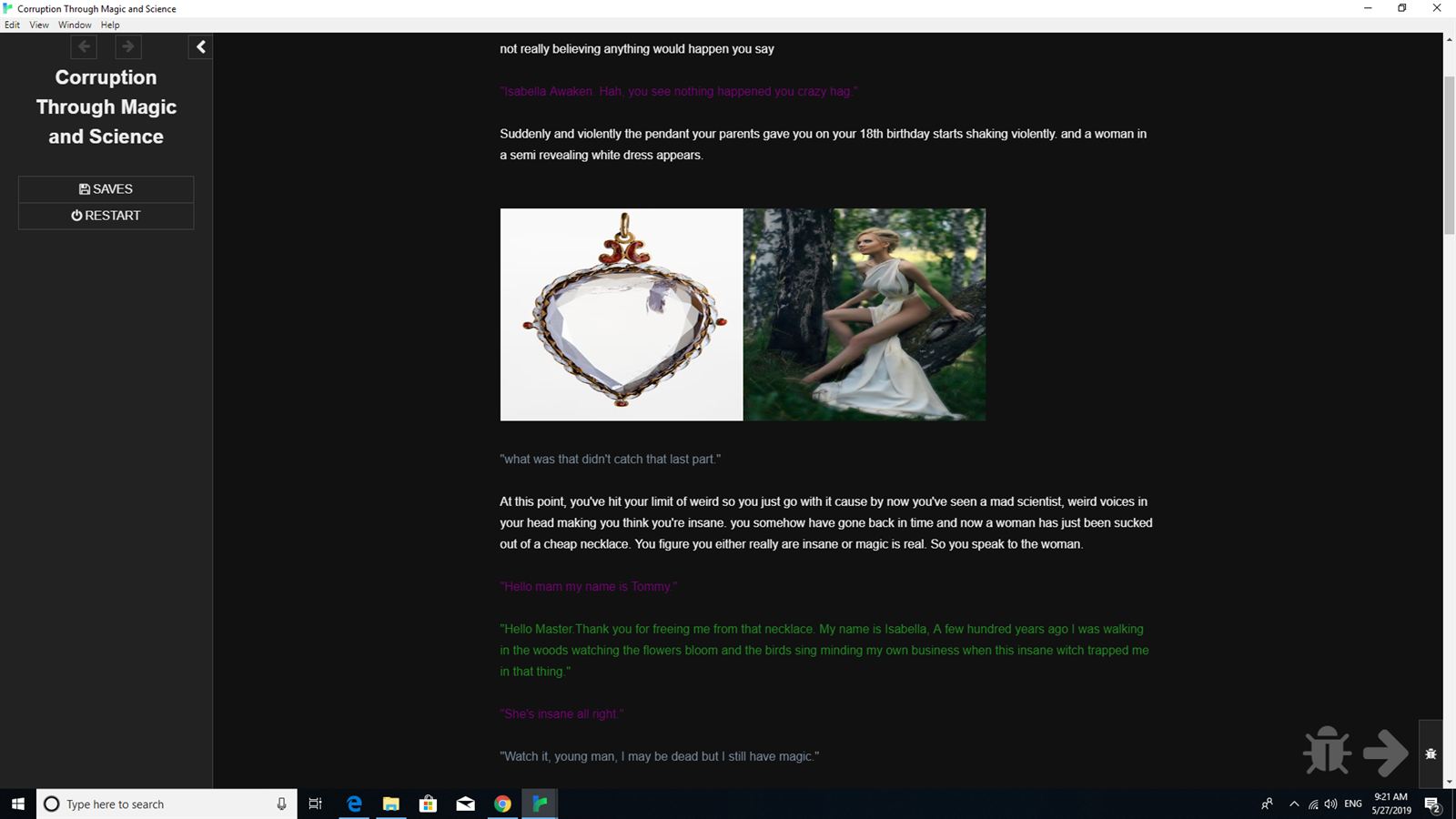My goal for this game is to create a linear story with a hero who uses magic to corrupt people and a villain who uses science to do the same. Once I get the hang of this, I intend to add an ending that will turn the game into a sandbox mode.