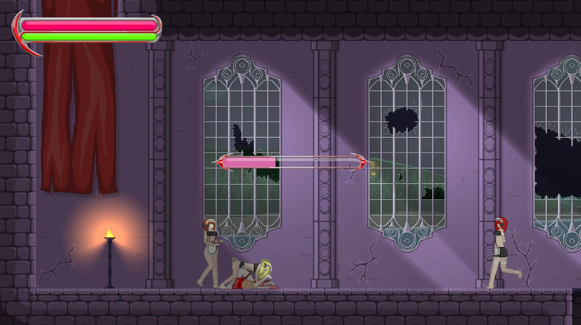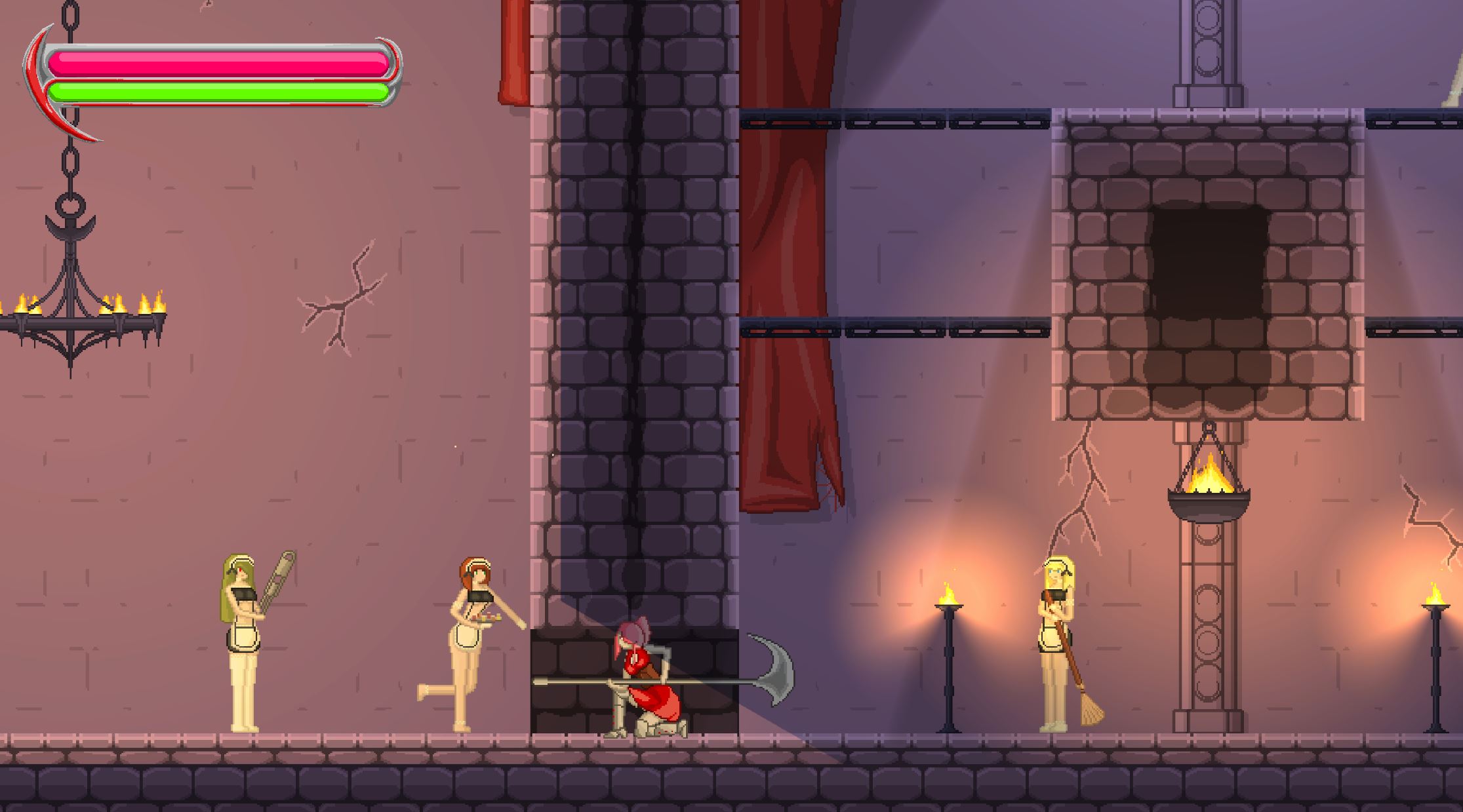 A 2D pixel-art Metroidvania with animated pixel H-scenes.
