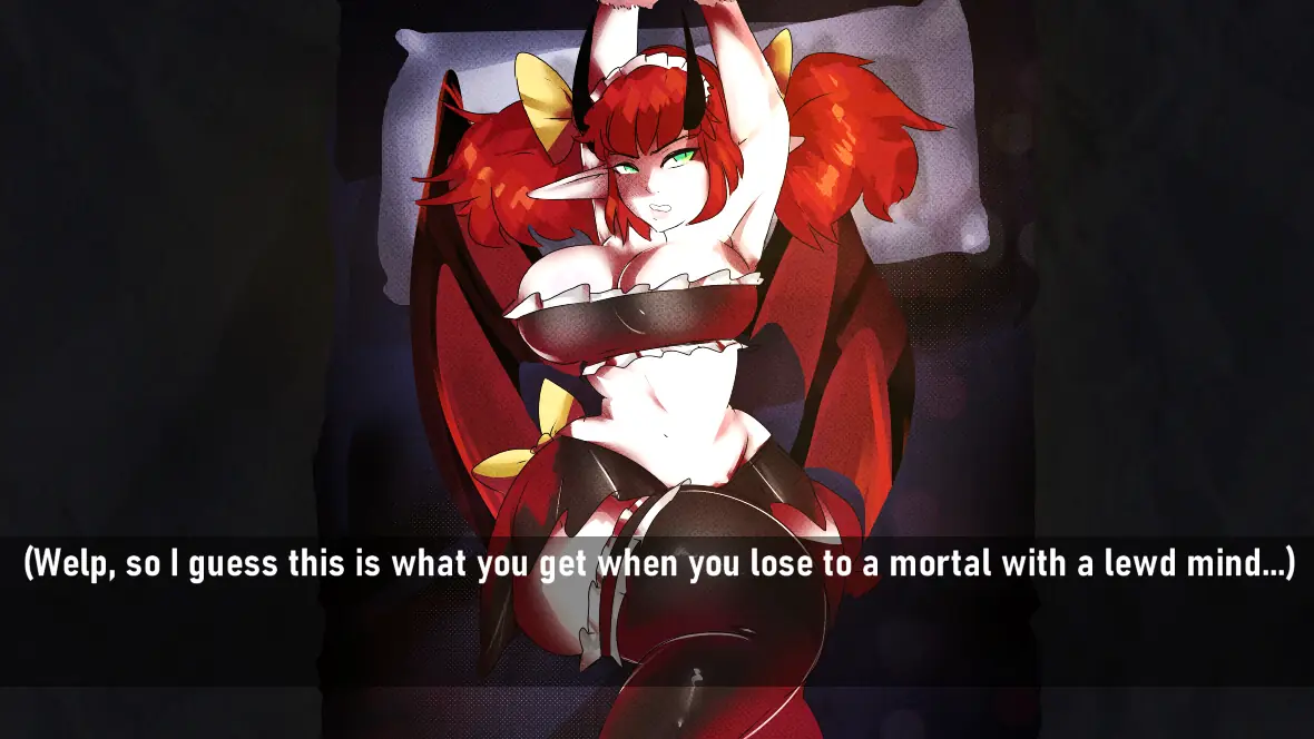 After selling your soul for an ice cream, you encounter the succubus Preada in a dark alleyway, who’s very eager to collect her debt.