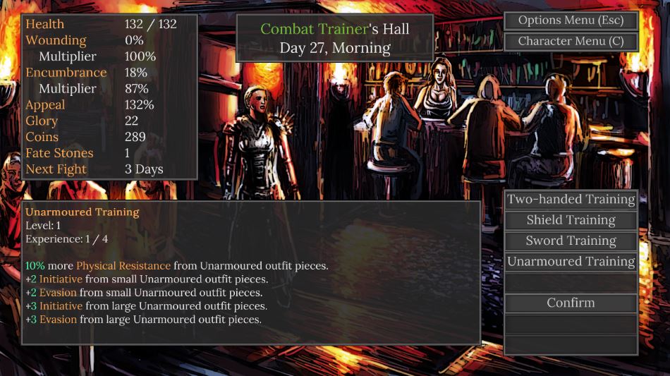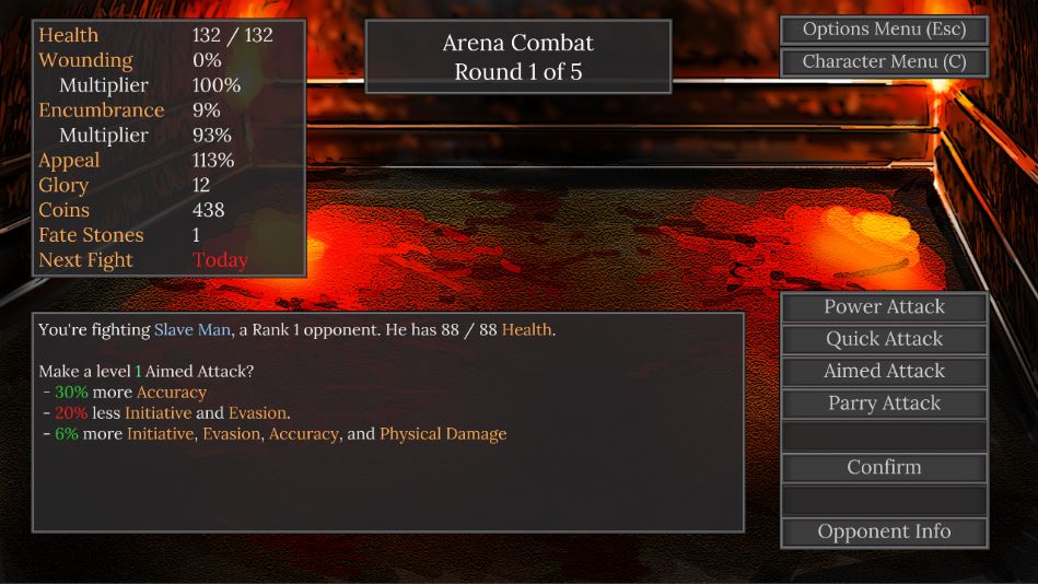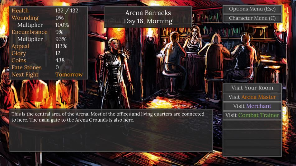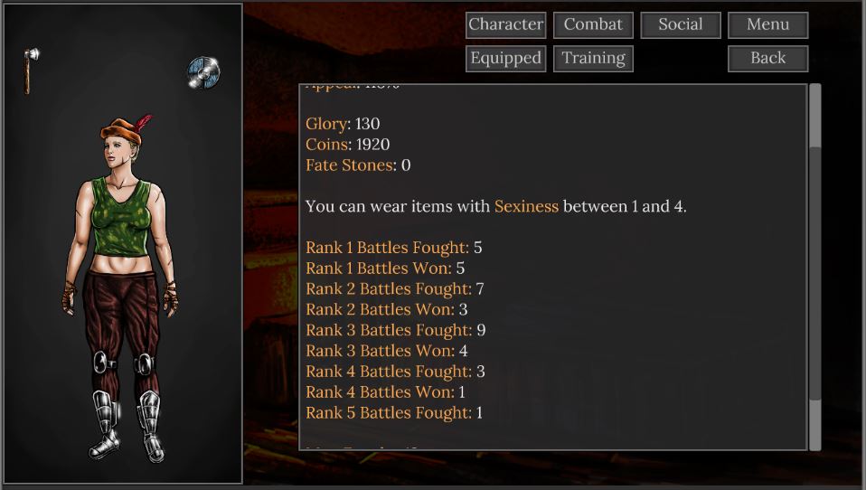You were once a mercenary. You have been captured, and you must now fight in an arena, as a slave gladiatrix! With each fight, you win gold to buy better equipment, and glory to buy your freedom.