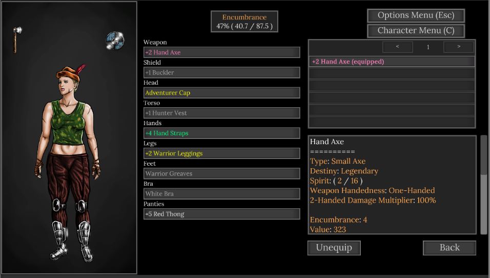 - Changes to the shop. The shop should now offer a lot more items for sale. Items generated are rerolled a couple of times, to help find items that the player can buy. This does not guarantee that all items will be purchasable, just that they are more likely. In the beginning, many items will still seem locked out, but this should reduce over the playthrough. A red X also marks items that you cannot buy or equip, to help spot them easier.