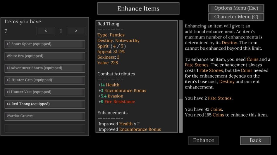 - Expanded on the outfit lewdness mechanic. Outfit pieces have a lewdness level. The main character will refuse to wear outfits that she is not comfortable with. However, her tolerance for outfits will change as her relationship level increases with the NPCs.