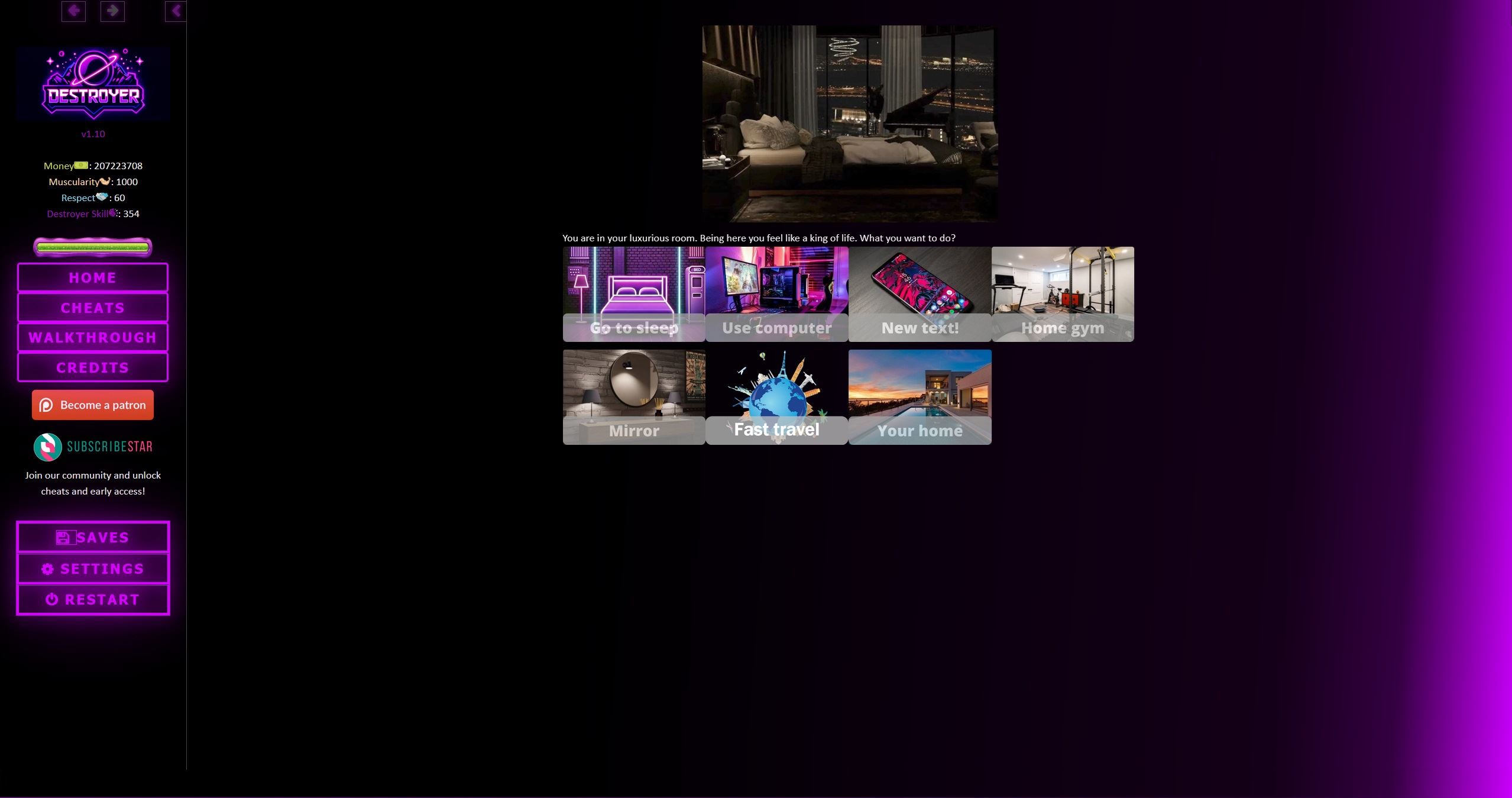 Enter the provocative world of Destroyer, an open-world sandbox game that seamlessly blends real pornographic content with interactive storytelling. Whether you’re exploring the city, building relationships, or diving into explicit adventures, every moment is designed to captivate and excite. The game is full of different mini-games, and there are more than 100 playable characters. Most of them have their own story, and some have different endings based on your decisions. The entire game consists of nearly one million words.