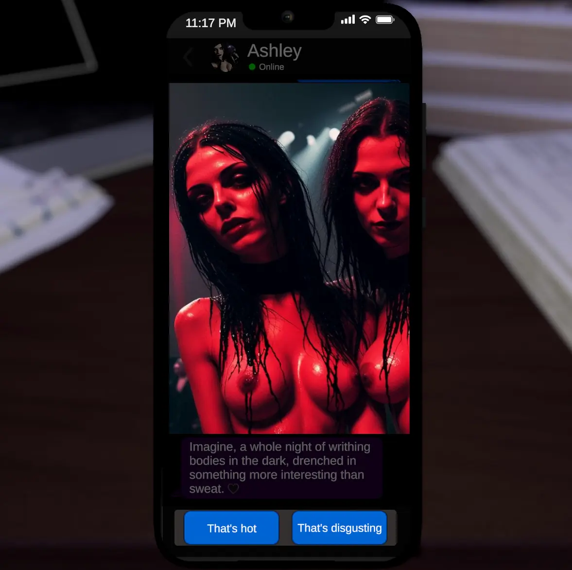 Your sister is a dangerous goth girl who won’t take no for an answer. She has her eye on you in this new Phone-Chat simulation. Can you handle her increasingly intense affection, or will you surrender to her twisted love?