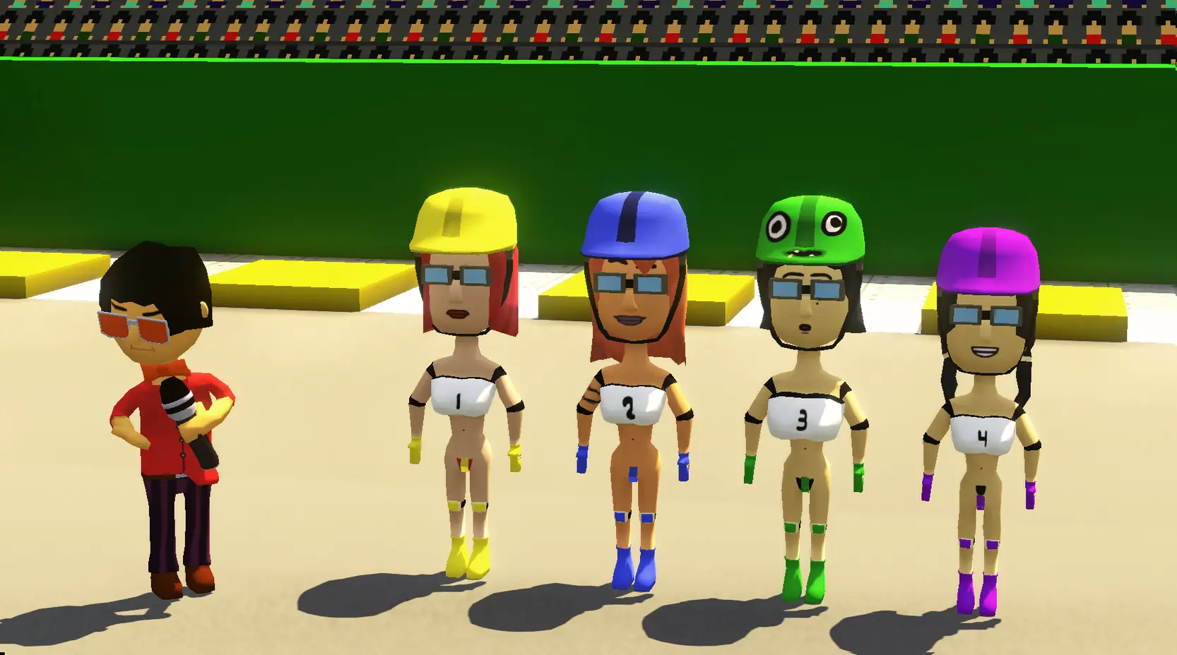 4 contestants are participating in a populair erotic underground game show for various reasons. They have to overcome; Quizes, Obstackle courses and the dreaded rock,papper,scissors trial. And really make shure to not, Catch that babey!​