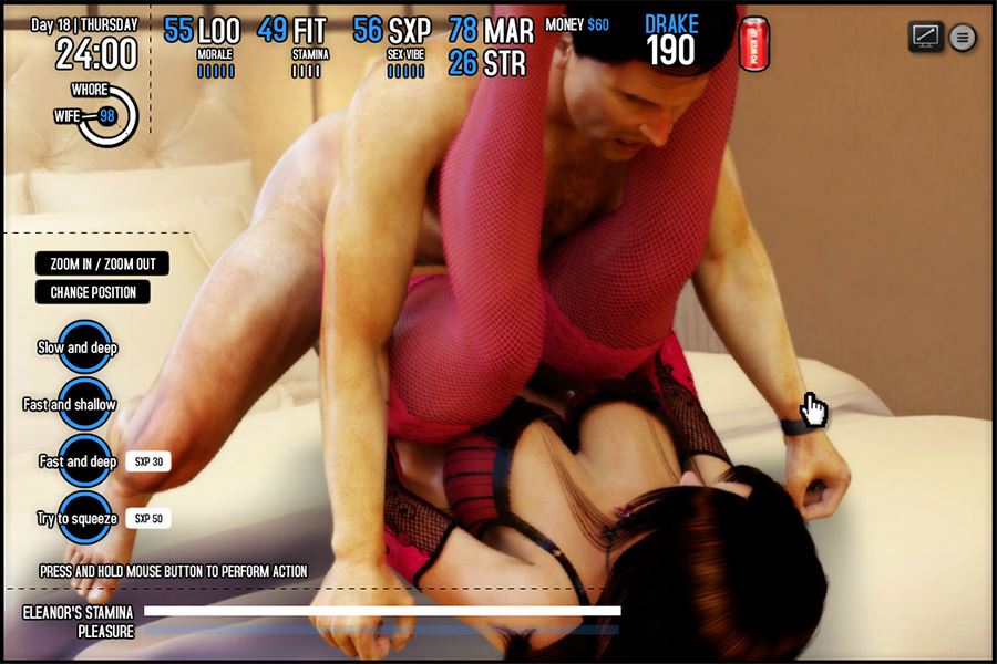 About The Game: Eleanor 2: Loving Wife or Dirty Whore is a porn game made on Flash game engine. This game is rated M and meant for adults with explicit contents and strong language. It is advised to read the tags to get an idea about the game. The current available version is v.Eleanor 2: Loving Wife or Dirty Whore. THe contents of the game is Uncensored. Eleanor 2: Loving Wife or Dirty Whore is developed and distributed by Lesson of Passion, Please support Lesson of Passion if want the development of Eleanor 2: Loving Wife or Dirty Whore game going or want to see more new games from them in future. The download links are crawled and gathered from various public sites. We do not host/modify or alter the contents. The uploader is responsible for the DMCA.