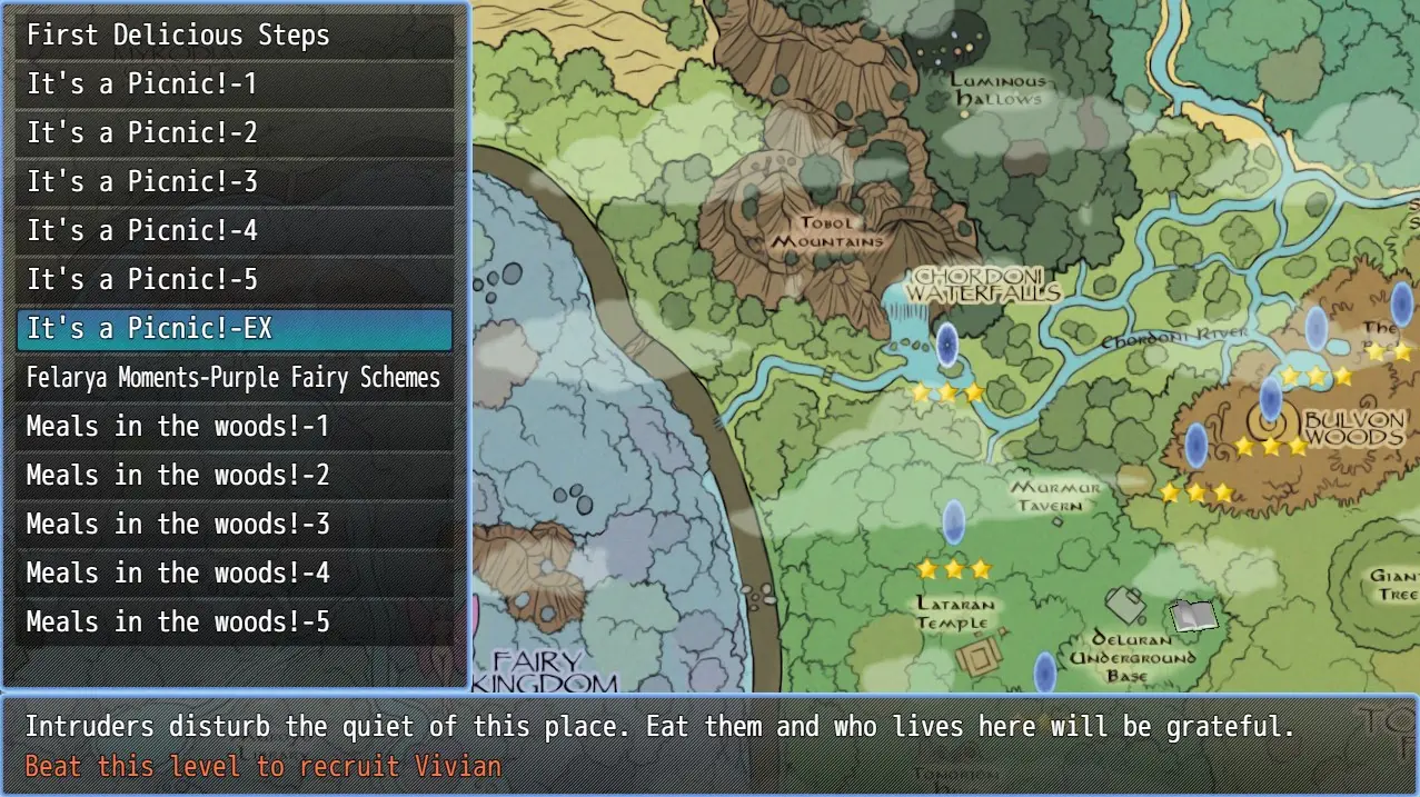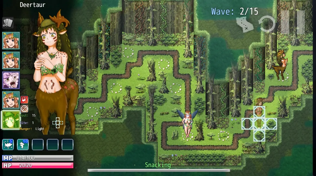 FVD is a tower defense based game that features many characters and is set in the world of Felarya by Karbo. Choose from a cast of characters, place them in a spot, and watch them nom away happily as wave after wave of tiny humans scramble to try make it from one side of the map to the other! As you progress, you’ll unlock more levels, characters, scenes, and spells to use. The better you are, the more famous characters you’ll unlock for use!​