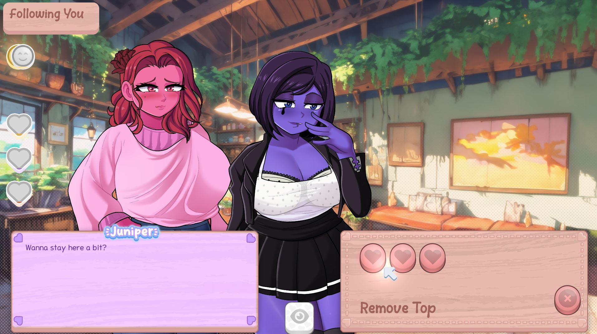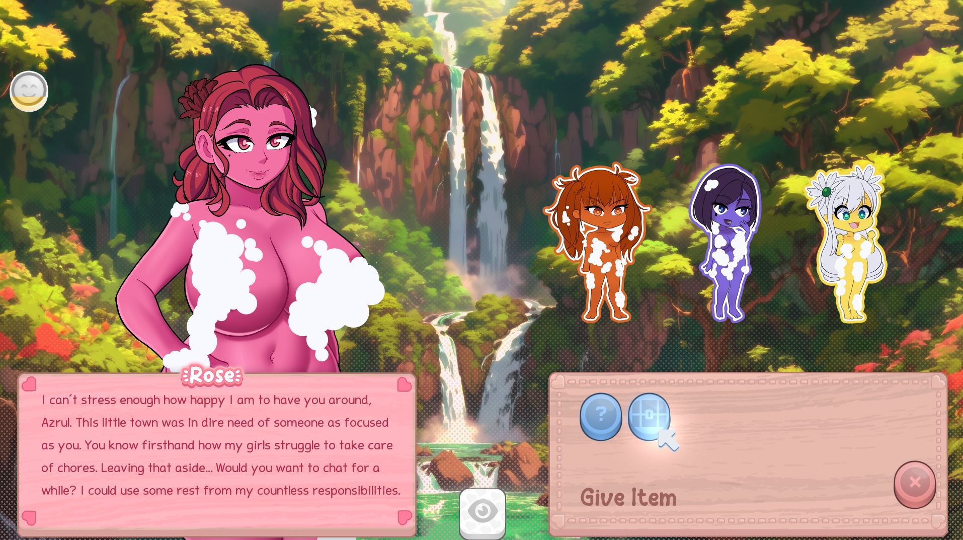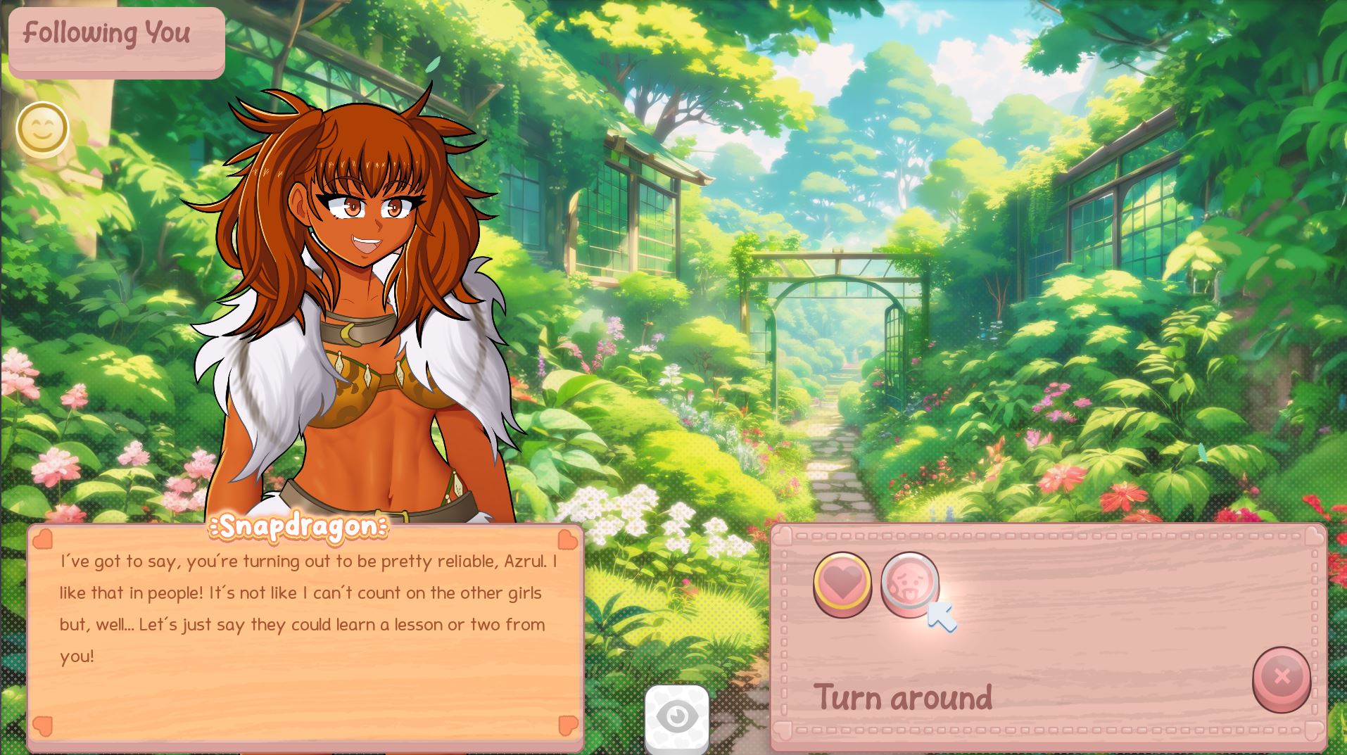 69 new CGs in version 0.2 and over 2800 new lines of dialogue - it's a big update.The new chapter will be available in a free version on itch.io, and the full version via Patreon for the Visitor tier and upwards.I'll also be introducing a new high-end tier from May 17th:"Elder Guardian" for those who want to contribute even more.A number of new gameplay systems are implemented in v0.2, such as the bouquet crafting.Create beautiful bouquets to give from flowers picked in the Glade and beyond - these flowers can be sacrificed at the shrine for different effects or simply given to the girls as tokens of appreciation, and help Rose fill up her horticulture book.The request system has been overhauled with a new success bar mechanic, displaying how the character tags affect the request you're making, along with other factors.Discover Rose's secret library and gain permanent upgrades from reading a number of available books.Patrons will now have their names in the Ledger - a mysterious book in the library that provides daily bonuses and rewards to everyone else playing the full version - along with the ability to acquire "Affinity Pearls."Affinity Pearls are a rare gem currency to spend on powerful, permanent changes and boosts to your favourite tags - given to you by the community and the patrons themselves!There are plans to add more uses for these rare pearls as we progress; more powerful upgrades to come!Along with this, we have the Voyeur and Exhibitionism side quest. This was voted on by patrons and won by a mile.It's a host of new scenes, leading to a new mechanic that acts as a gallery for all the non-request artwork in the game.Want to see Juniper's introduction image a second time? Or maybe the CGs from the one-off scenes of Sunflower bathing? This is how you do it.We have Flick's shop too. Currently he sells flowers for bouquet crafting, but his stock will expand as new updates drop. Plenty planned here!All this along with a whole new chapter that sees you exploring the swamps of Flowerglade and deep mines and discovering Rose's secret garden.