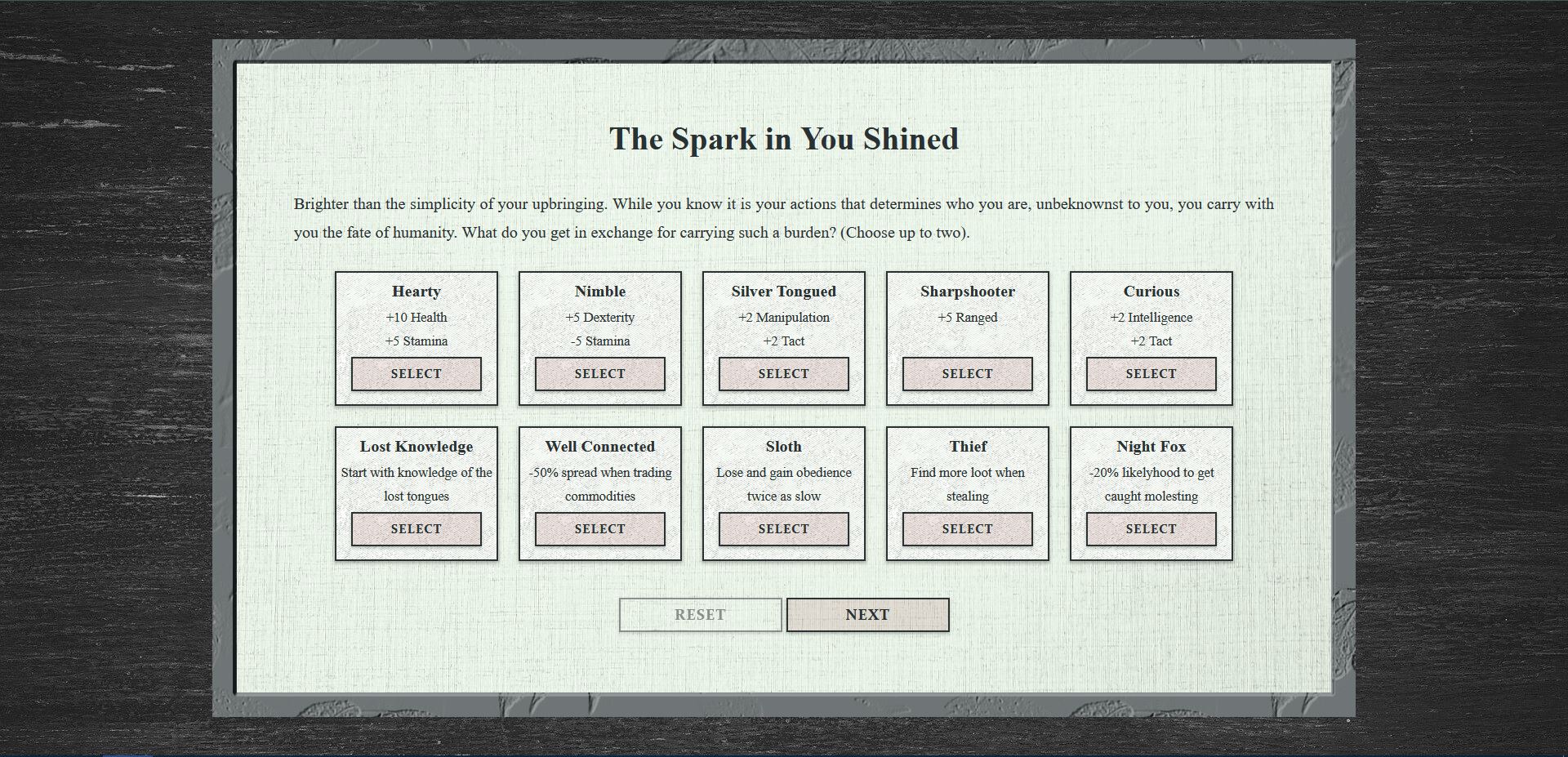 The game takes the player on a journey from slavehood to eventually the main character in a power struggle between settlements and the last centralized power, the Trade Union. From here, the player can align themselves with a particular faction, affecting the entire game world. The world itself is dynamic and constantly changing, many of these changes are completely unknown to the player until they receive higher status and thus intel. The world also features a dynamic economy that operates on Supply-and-Demand and simulated Brownian motion.