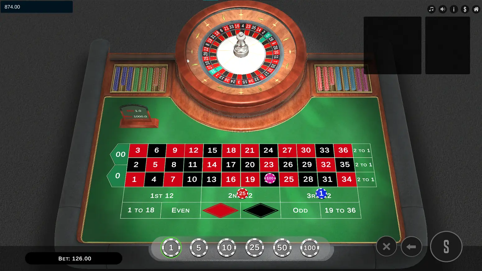 Roulette also has a reset credit button with $ icon which gives you 1000$.