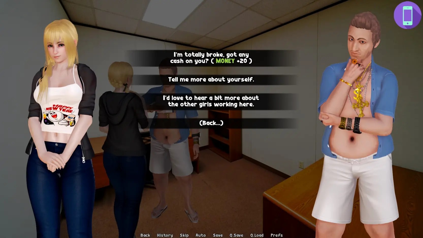 The game begins as Carmen arrives at the club and starts a conversation with the manager about the job…