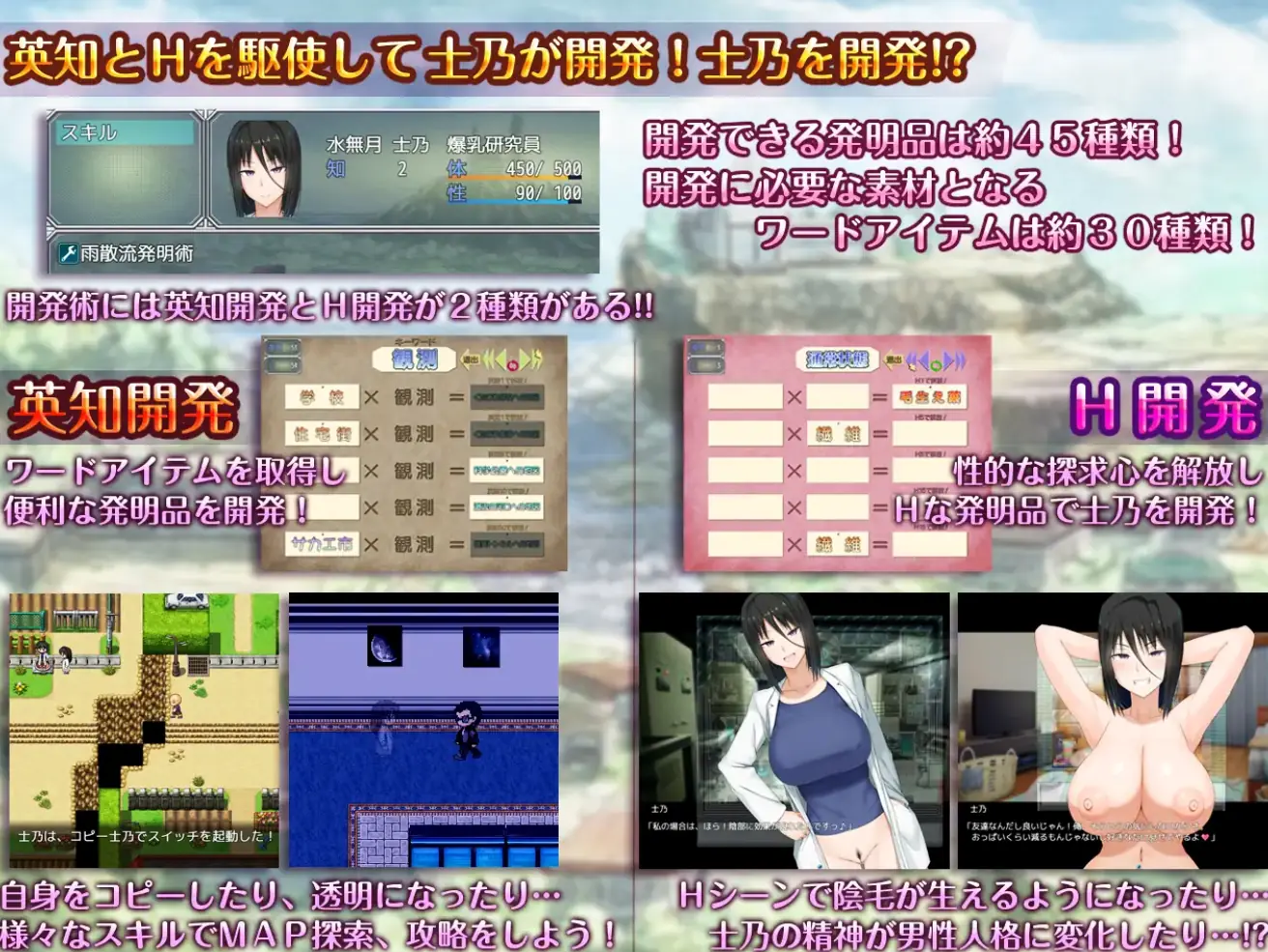 About The Game: H? Wisdom? Nature Exploration! is a porn game made on RPGM game engine. This game is rated M and meant for adults with explicit contents and strong language. It is advised to read the tags to get an idea about the game. The current available version is v.H? Wisdom? Nature Exploration!. THe contents of the game is Censored. H? Wisdom? Nature Exploration! is developed and distributed by Ota Guchi Field, Please support Ota Guchi Field if want the development of H? Wisdom? Nature Exploration! game going or want to see more new games from them in future. The download links are crawled and gathered from various public sites. We do not host/modify or alter the contents. The uploader is responsible for the DMCA.