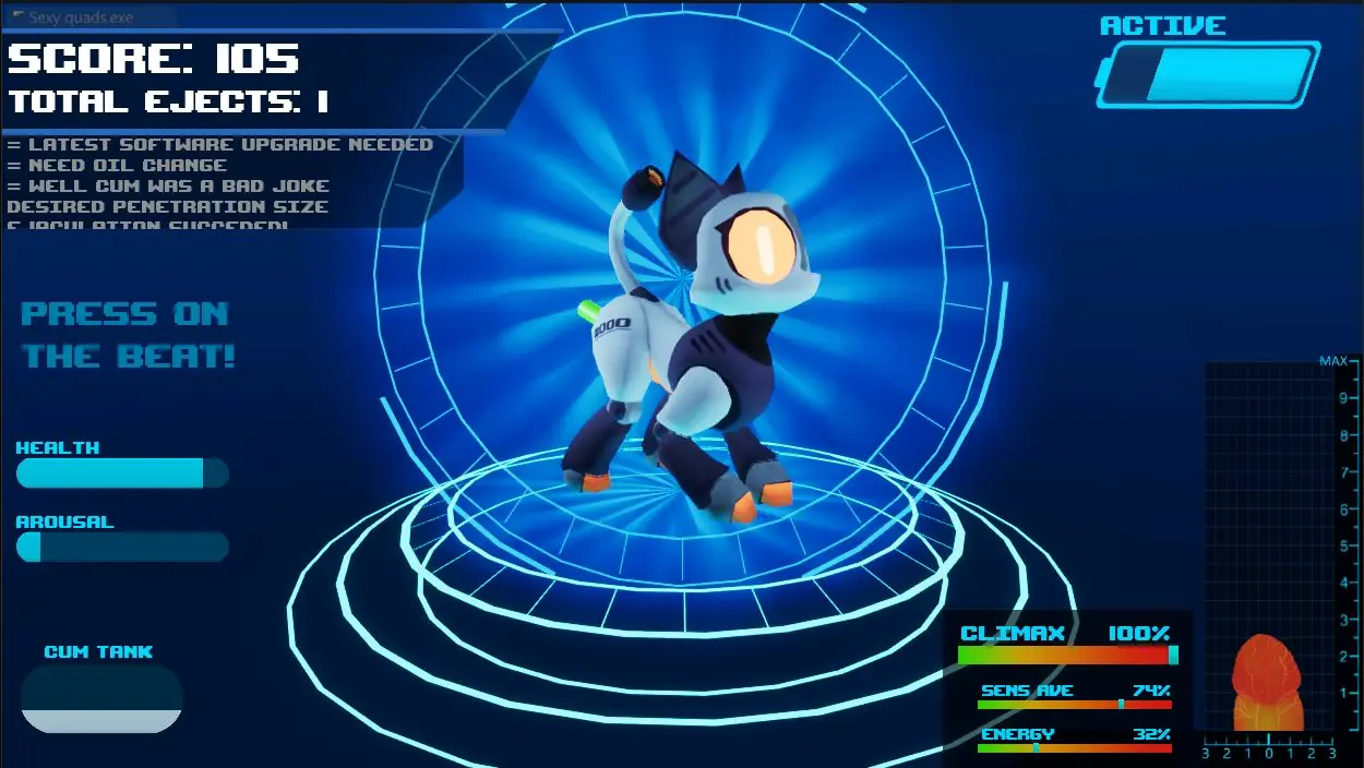 Known bugs- audio adjusts only music- animation rarely doesn't play at times- white noise becomes weird at high volume and maybe causes crashing? - Number on the thighs doesn't update. Unreal has a feature to update texts on decals but the feature doesn't work, so i'm leaving it as zeros.