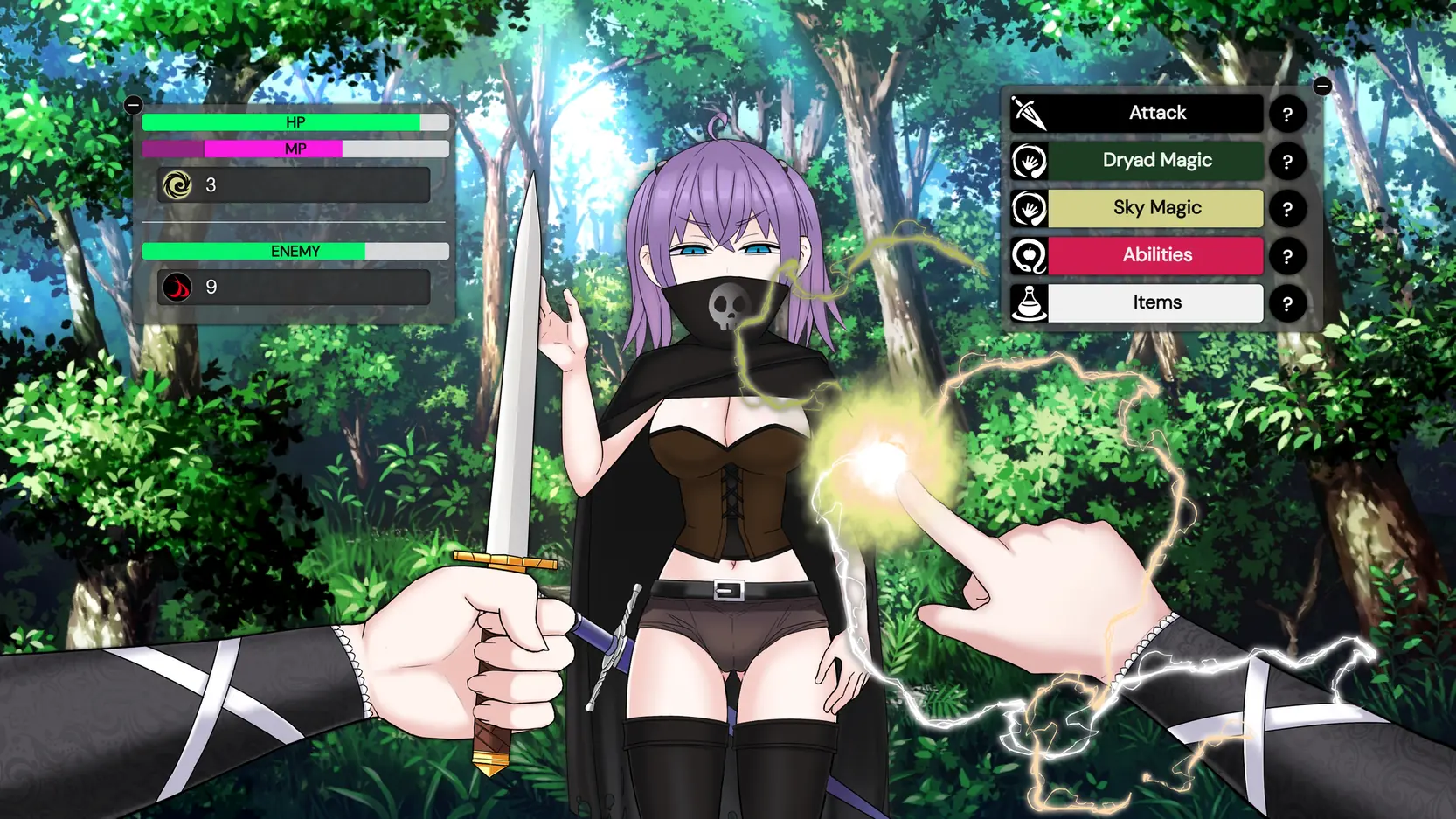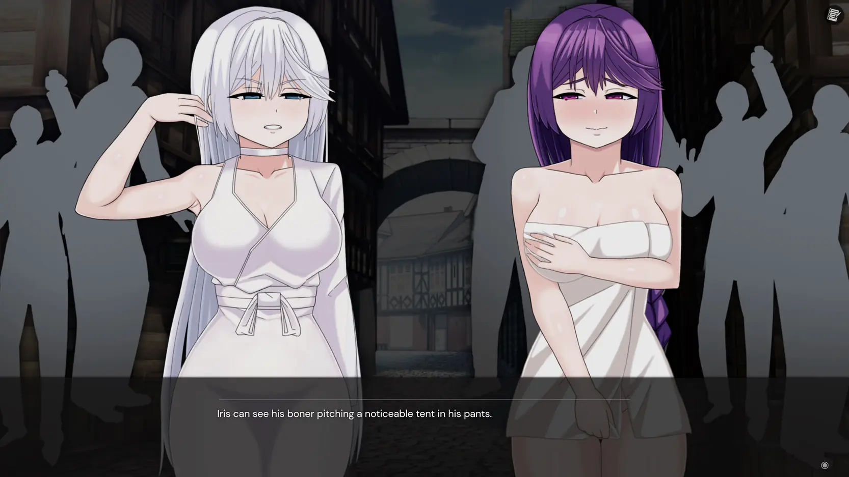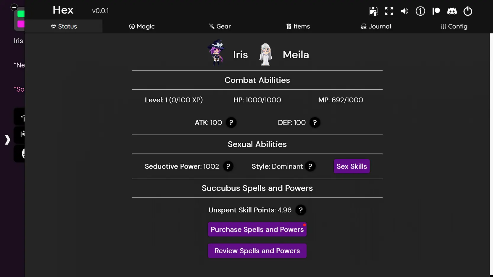 Hex is a sandbox game presented as a visual novel where you can perform prostitution, proposition (or cast spells on) NPCs, go streaking, get covered in cum, and engage in combat with a variety of spells and abilities using a unique turn-based battle system.