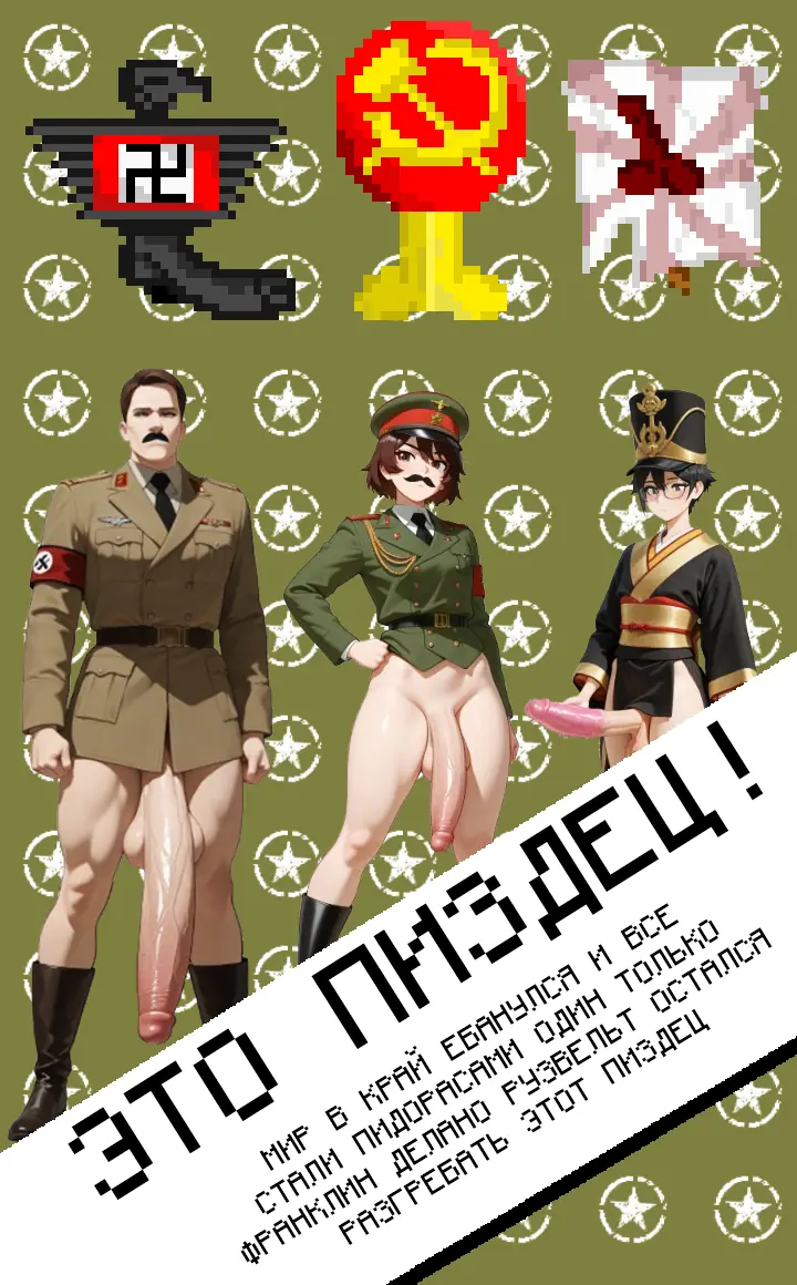 You will have to defeat the Third Geich, the Gay Union of Faggot Republics and the Cocksucker Empire. Or rather their leaders Adolf Pidor, Joseph Sosalin and Emperor Cocksucker.