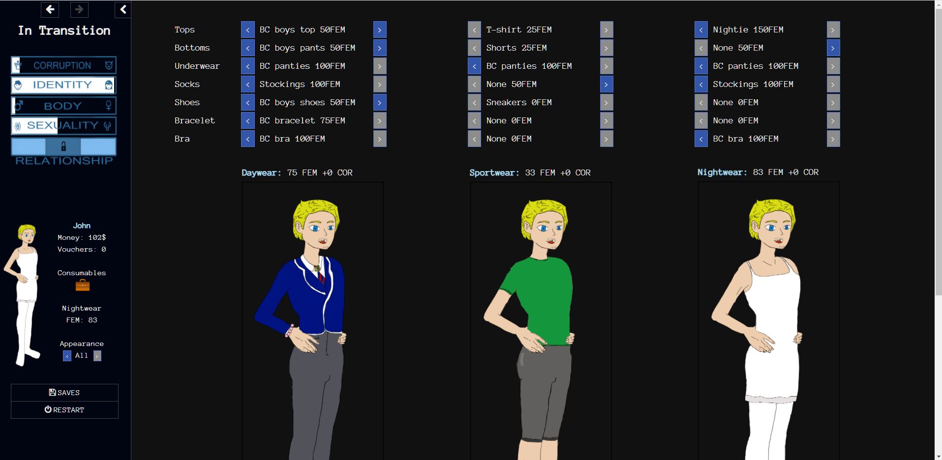 About The Game: In Transition is a porn game made on HTML game engine. This game is rated M and meant for adults with explicit contents and strong language. It is advised to read the tags to get an idea about the game. The current available version is v.In Transition. THe contents of the game is Uncensored. In Transition is developed and distributed by lovesky, Please support lovesky if want the development of In Transition game going or want to see more new games from them in future. The download links are crawled and gathered from various public sites. We do not host/modify or alter the contents. The uploader is responsible for the DMCA.