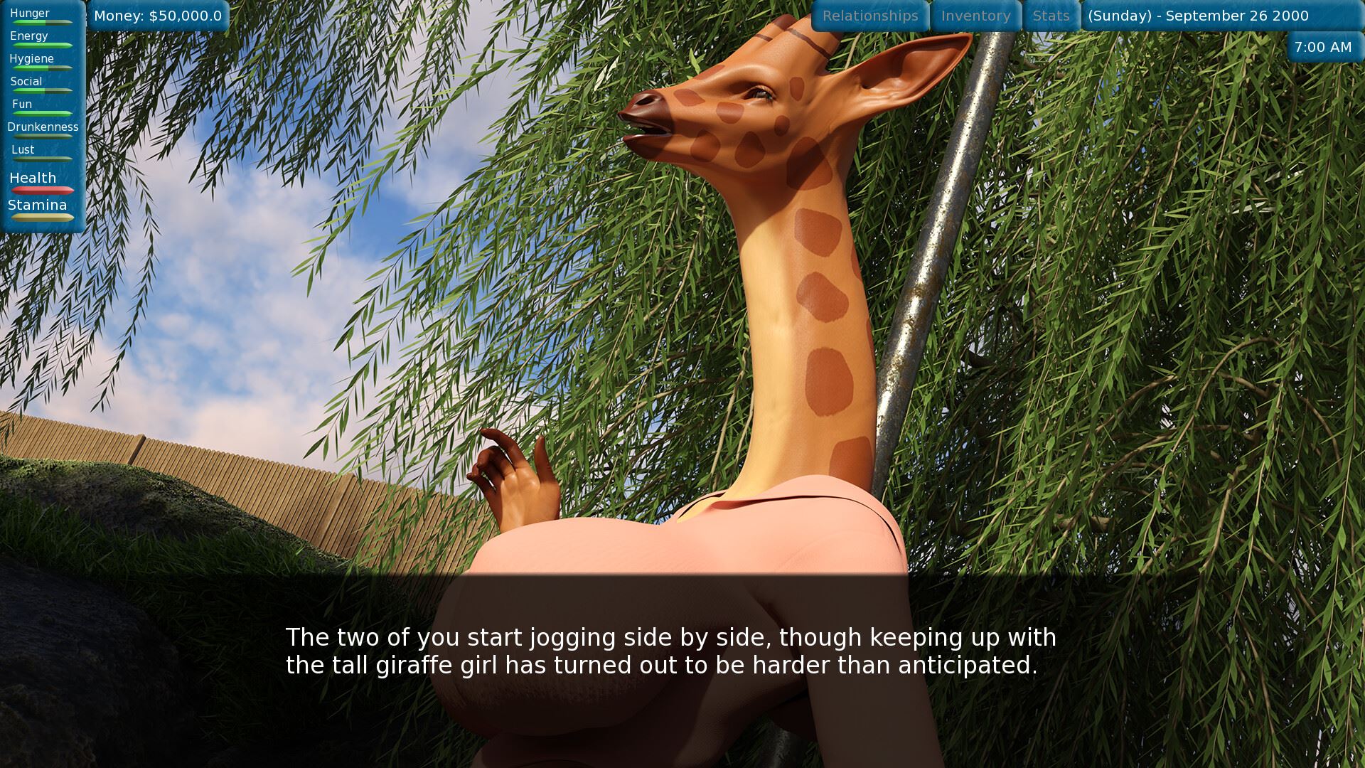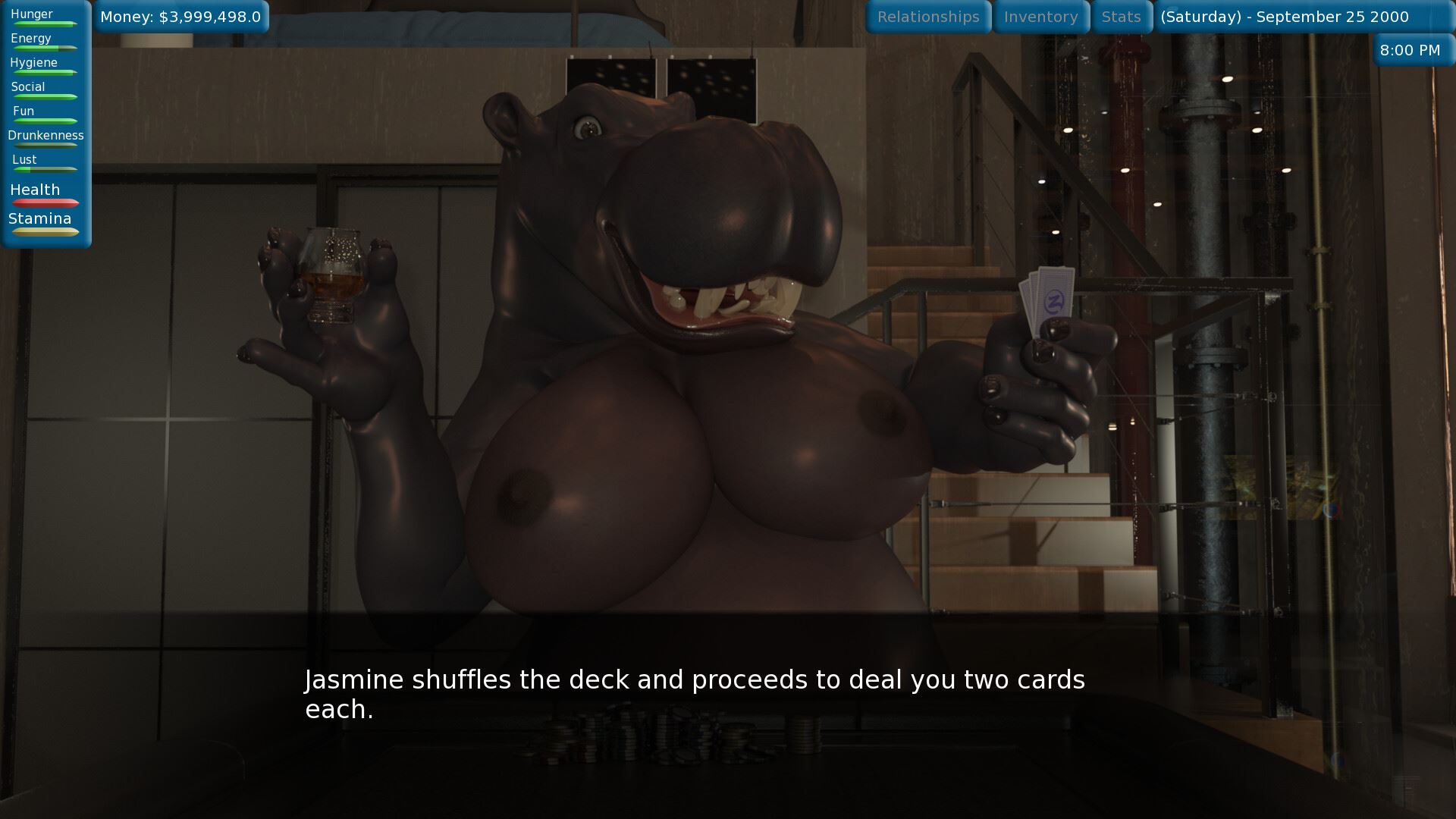 It’s a Gluttonous Life is a life simulator set in an alternate 2000s in a city inhabited by voracious anthropomorphic animal women. After waking up from a coma and suffering from amnesia, you find yourself as prey in a world where vore is legal, albeit with some limitations. Thankfully, a nurse takes pity on you and lets you stay at her place until you can get back on your feet. Now you have to find a way to make a living while also avoiding being turned into padding on a woman’s hips.