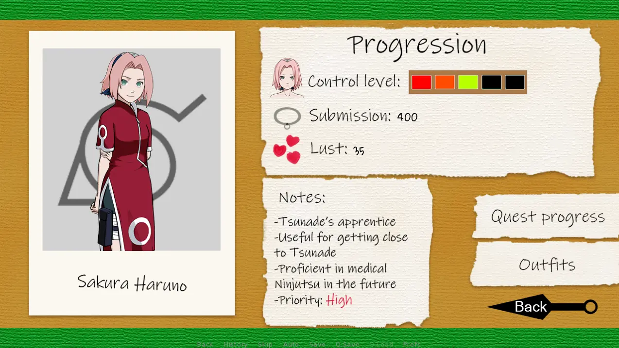 Never having achieved much in Konoha, you suddenly find yourself back to the past. With the help of the mysterious Saru, you unlocked the power of your clan and gained the ability to turn others into your followers. You will have have to track down and indoctrinate key kunoichi that will be useful in your quest to revive your clan.