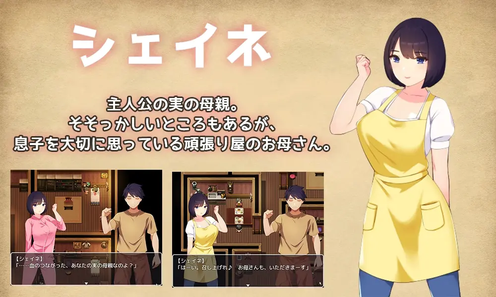 This work is a mother-son incest romance RPG featuring a “real mother” and her “son.”