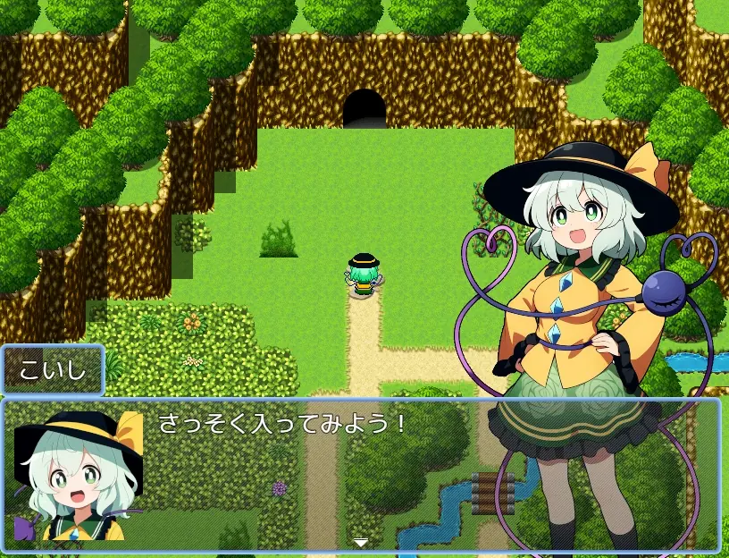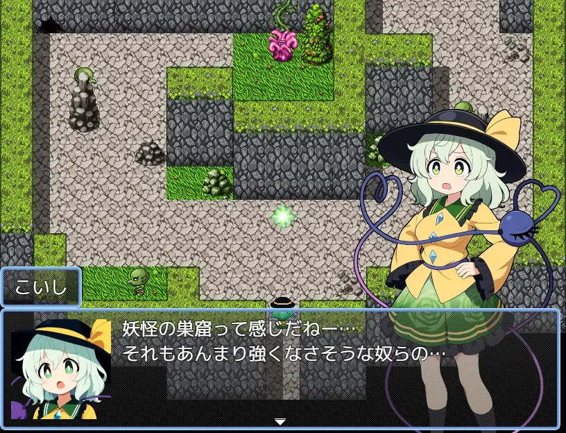A game where Koishi Komeiji explores a cave, and if she loses a battle with an enemy, a naughty event occurs.
