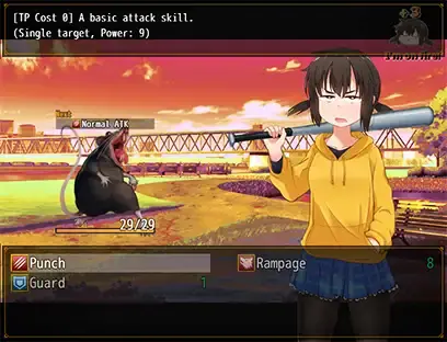A mysterious door appears in the middle of town. And inside it… There’s our protagonist, bashing the skulls of offenders who thrive in a lawless world! Though sometimes she’ll be on the receiving end!