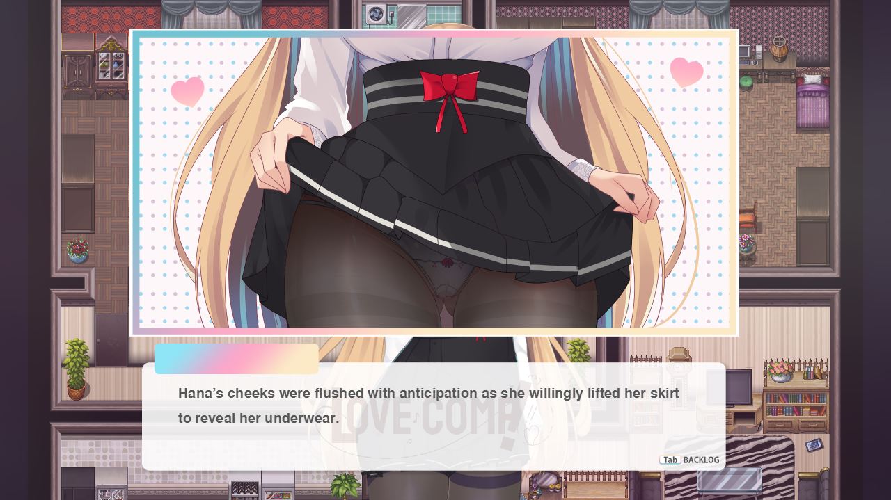 - If you reached Love Level 2 with Hana, the “Tease” interaction in the “♡♡♡” menu (Action System) was blank. This has been fixed, and a couple of new random interactions have been added to Love Level 2 specifically.