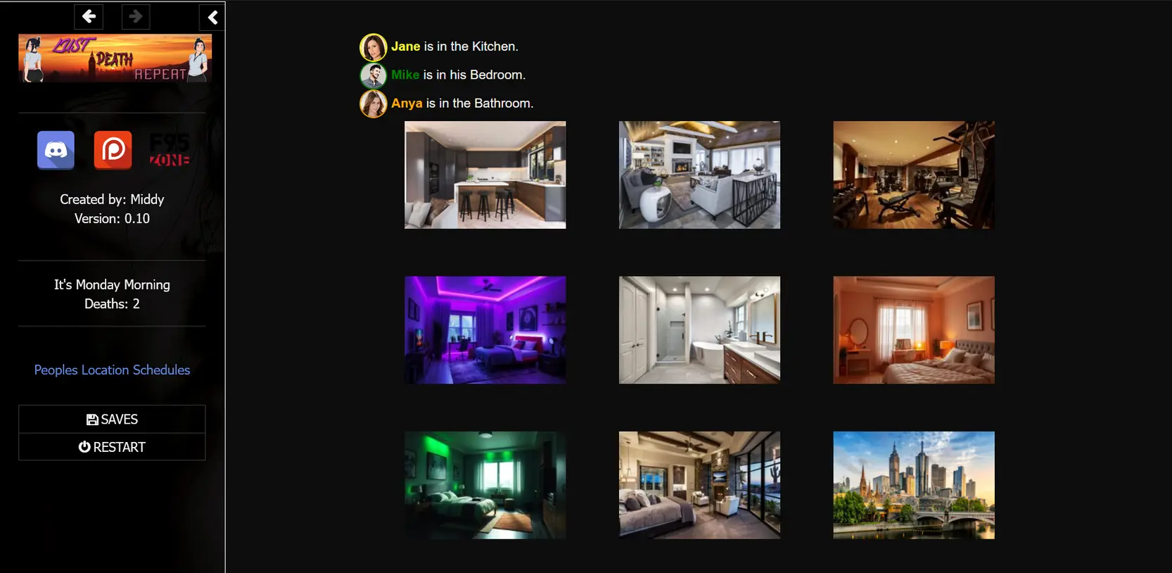 About The Game: Lust, Death, Repeat is a porn game made on HTML game engine. This game is rated M and meant for adults with explicit contents and strong language. It is advised to read the tags to get an idea about the game. The current available version is v.Lust, Death, Repeat. THe contents of the game is Uncensored. Lust, Death, Repeat is developed and distributed by Middy, Please support Middy if want the development of Lust, Death, Repeat game going or want to see more new games from them in future. The download links are crawled and gathered from various public sites. We do not host/modify or alter the contents. The uploader is responsible for the DMCA.