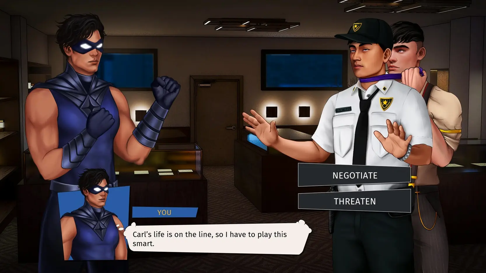 MASK CITY: CHAPTER ZERO is a detective visual novel that lets you be a superhero, investigating a string of murders. Talk to witnesses, meet allies and fight bad guys. It’s a small-town story with big city spice written by bestselling author Aaron Crash​