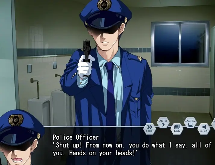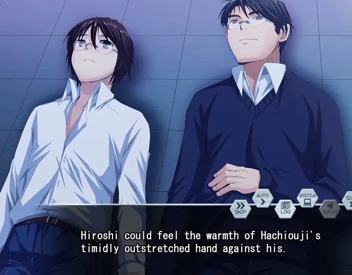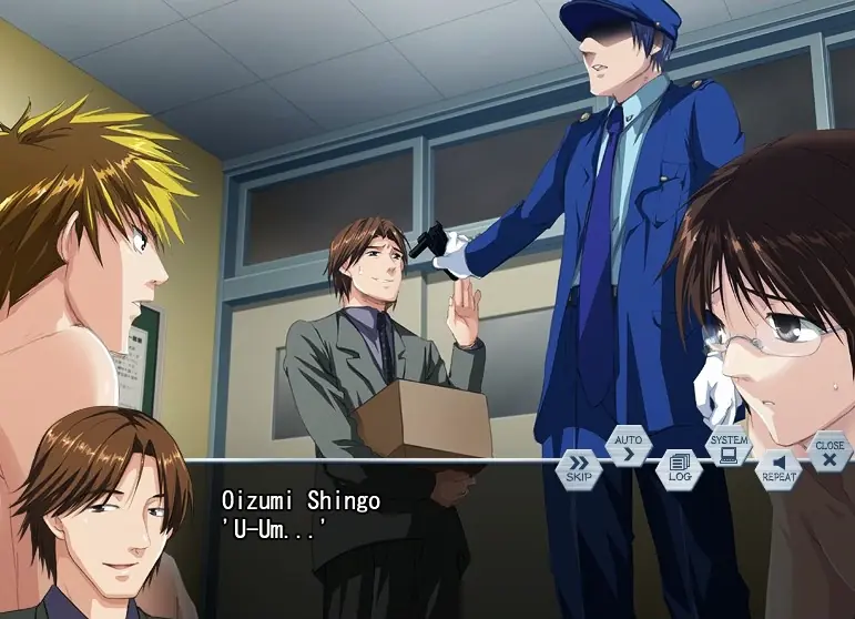 The quiet Numata Hiroshi is being blackmailed by his classmate, Himehara Yoritake, into performing sexual acts for him. One day, Himehara orders Numata to steal the exam answers off the teacher’s desk, which sets off a chain of events culminating in the two men being among the captives taken by a criminal impersonating a police officer.