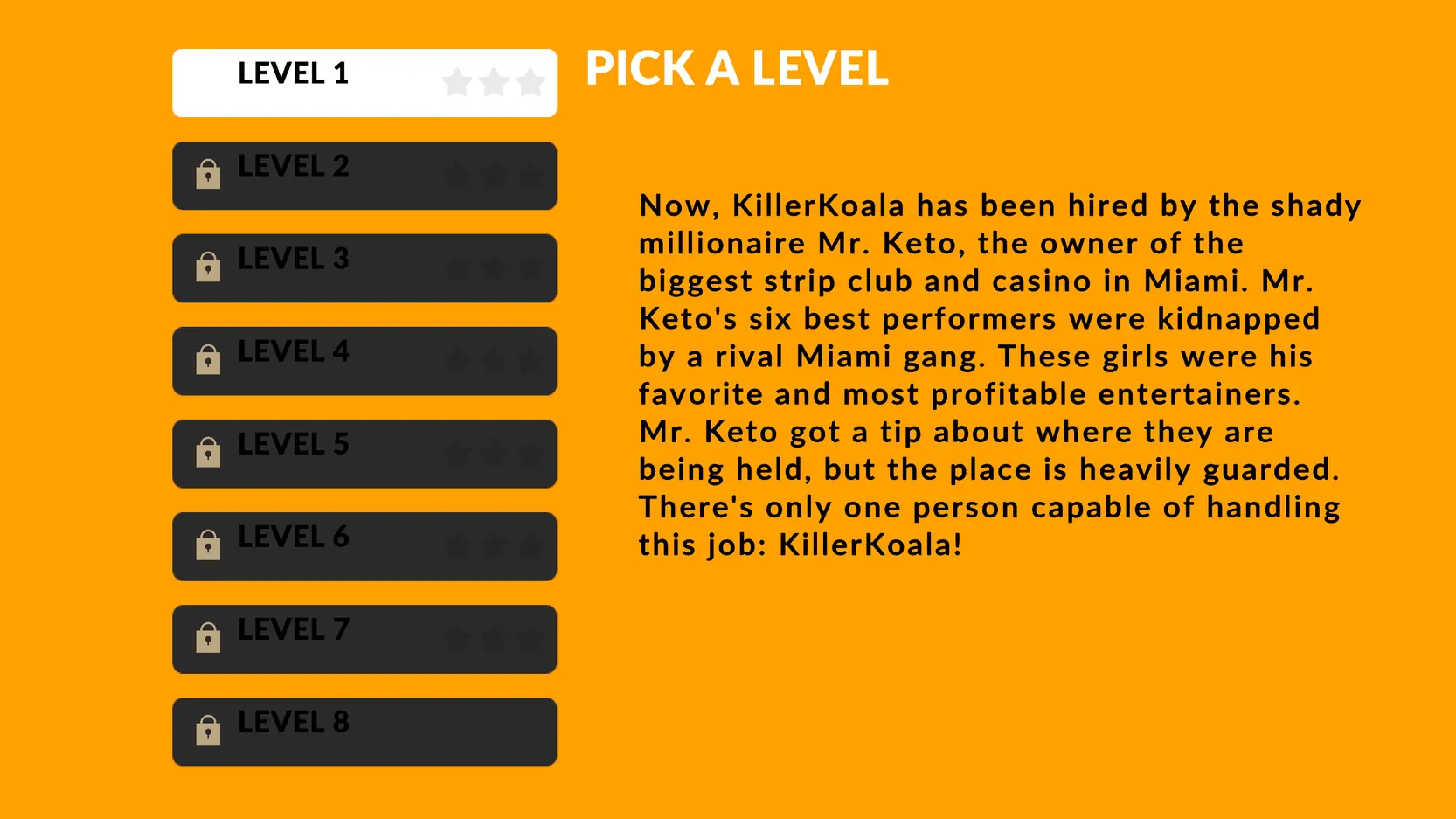 Step into the neon-soaked, adrenaline-pumping city of Miami. You play as KillerKoala, a legendary and enigmatic hitman known for his brutal efficiency and signature koala mask. Hired by the shady millionaire Mr. Keto, owner of the city’s biggest strip club and casino, you’re on a mission to rescue his six best performers who have been kidnapped by a rival gang.