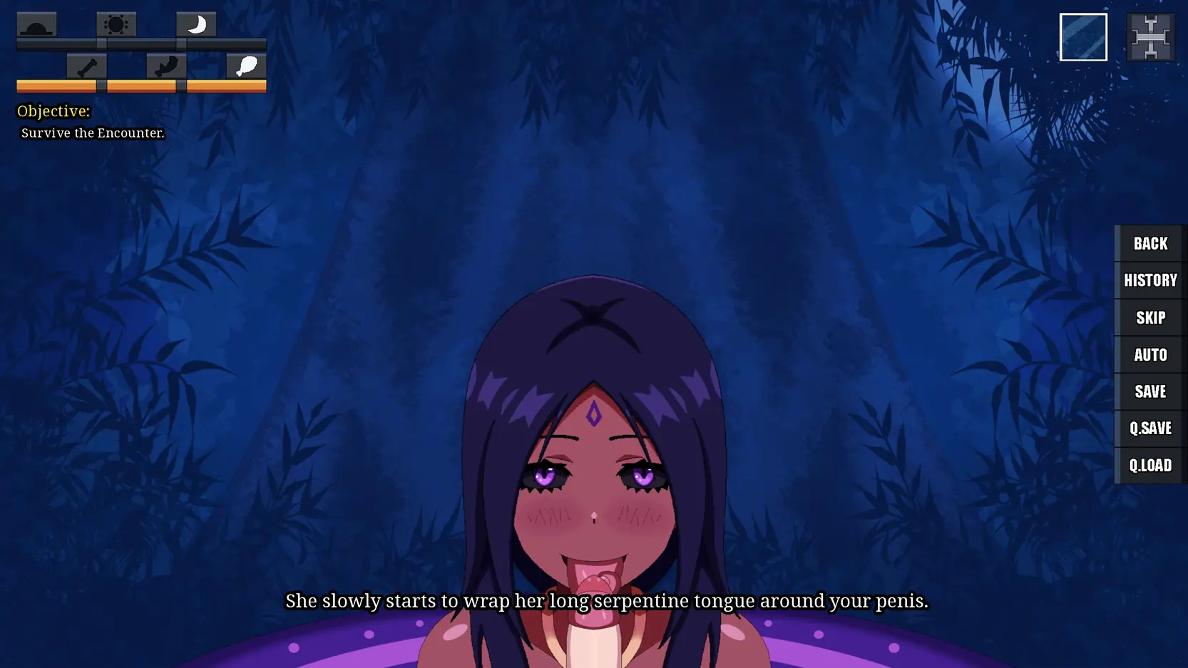 Stranded in a perilous jungle covered in darkness, you encounter and develop a relationship with an alluring monster girl.